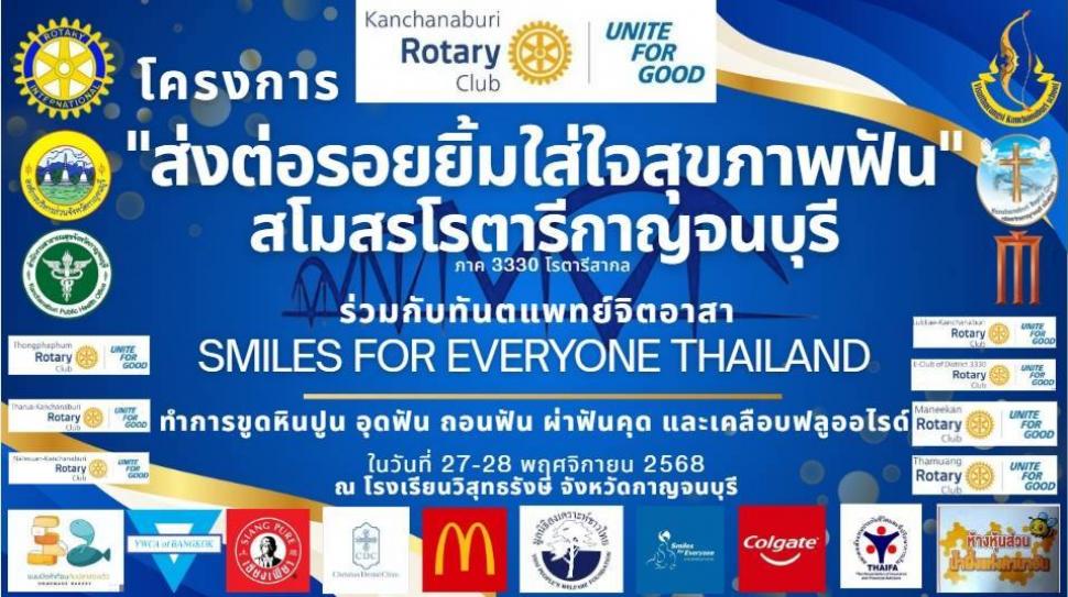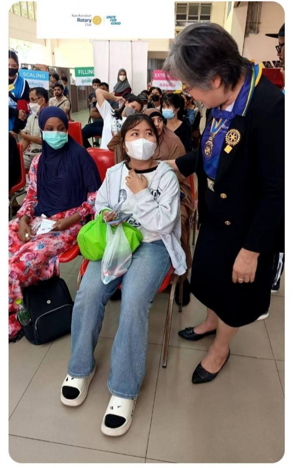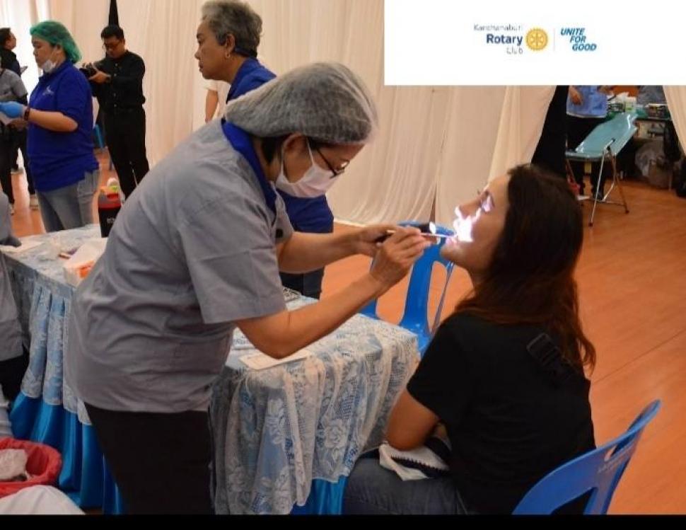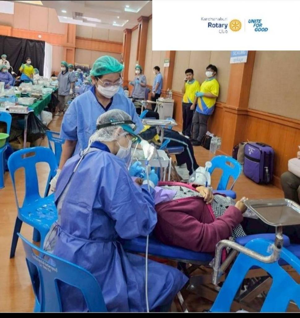 นายกวีณา อินทระสังขา นายกสโมสรโรตารีกาญจนบุรีได้ระดมทีมงานทันตแพทย์จิตอาสาและบุคลากรทางการแพทย์ กว่า 50 ท่านทั่วประเทศ ให้บริการกับประชาชน เด็กและเยาวชนผู้ขาดโอกาสในพื้นที่จังหวัดกาญจนบุรีกว่า1,000 คน มาดูแลช่องปาก