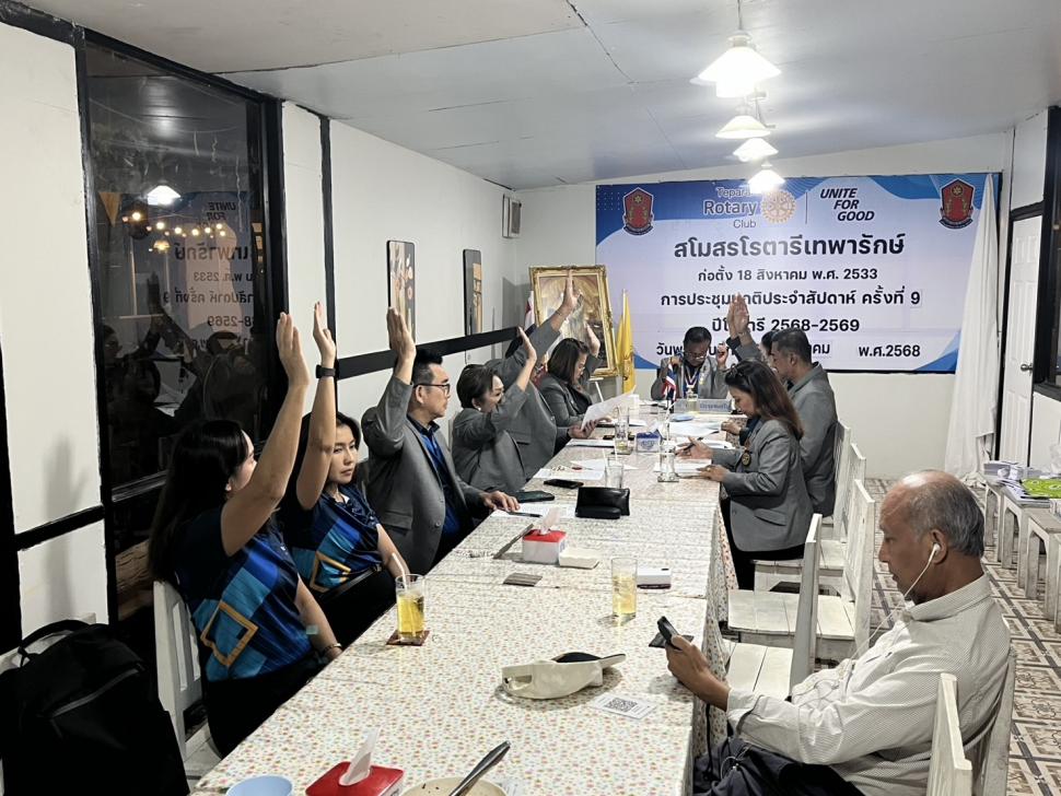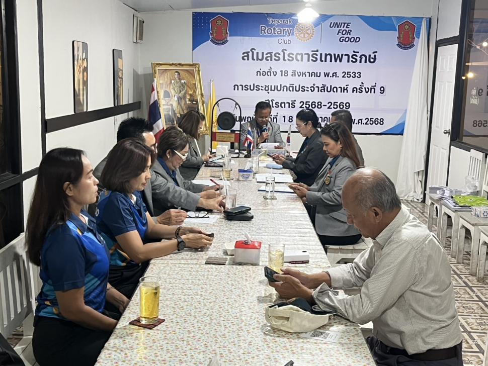 นย. พีรเดช ประชุมชนเจริญ นายกสโมสรโรตารีเทพารักษ์ ภาค 3330 พื้นที่ 22 ปีโรตารี 2568-2569 พร้อมด้วยสมาชิกสโมสร โรตารีแอนน์ สุภาพบุรุษ และแขกต่างสโมสร เข้าร่วมประชุมอย่างอบอุ่น