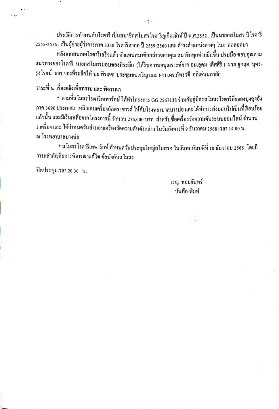 ➖ วาระที่ 6 ประชุมสามัญประจำปี 2568-2569 ของสโมสรโรตารีเทพารักษ์ ซึ่งที่ประชุมได้มีมติแก้ไขหลายหัวข้อในธรรมนูญของสโมสรฯ