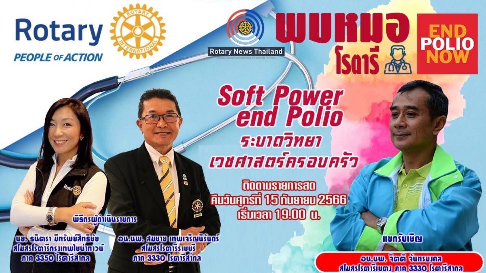 พบหมอ โรตารี Soft Power end Polio ระบาดวิทยา เวชศาสตร์ครอบครัว ติดตามรายการสด คืนวันศุกร์ที่ 15 กันยายน 2566 เริ่มเวลา 19.00 น.