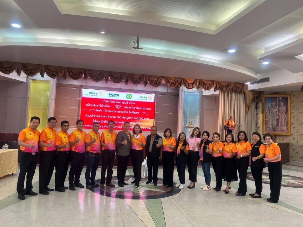 ของสโมสรโรตารีบ้านโป่งร่วมกับสโมสรโรตารีพระประแดง และ บริษัท ไทย โฮย่า เลนซ์ จำกัด ร่วมบริจาคแว่นตา 300 อันมูลค่า 360,000 บาทให้กับนักเรียนและประชาชนในเขตอำเภอบ้านโป่ง