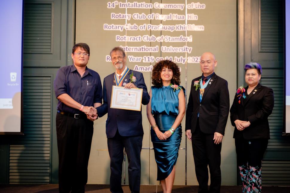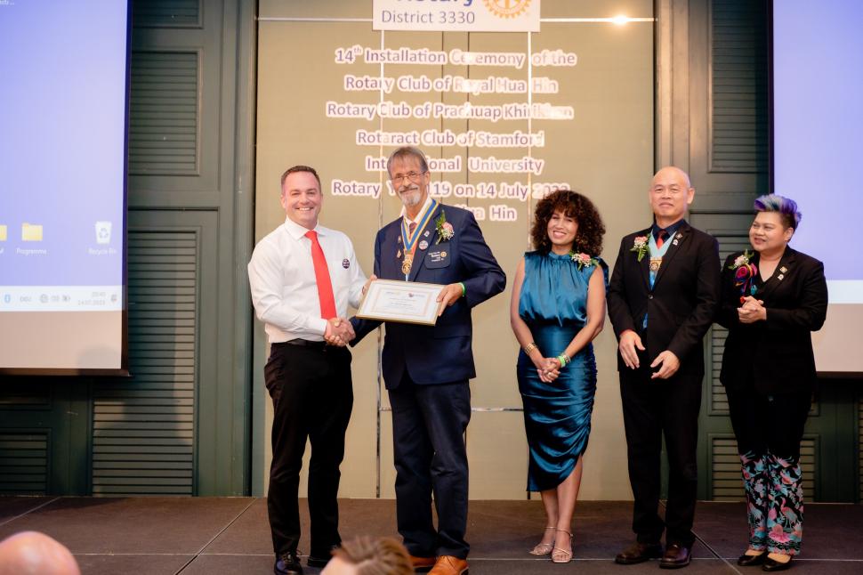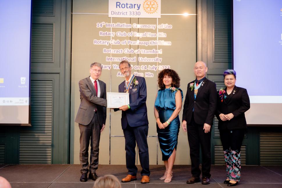 Our District Governor Chatchawal Telavanich also conducted the Installations for President Stephen Noton of the Rotary Club of Prachuap Khirikan and President Nuttapon Panjoy of the Rotaract Club of Stamford International University on the night. Chartered in 2010, the Rotary Club of Royal Hua Hin now has a total of 58 members from 17 nationalities after having conducted the inductions of four new members at the Installation Night, namely; Dr. Sarun Jotikasthira, Dr. Henrik Fagersson, Guenter Busch and Dieter Strack.