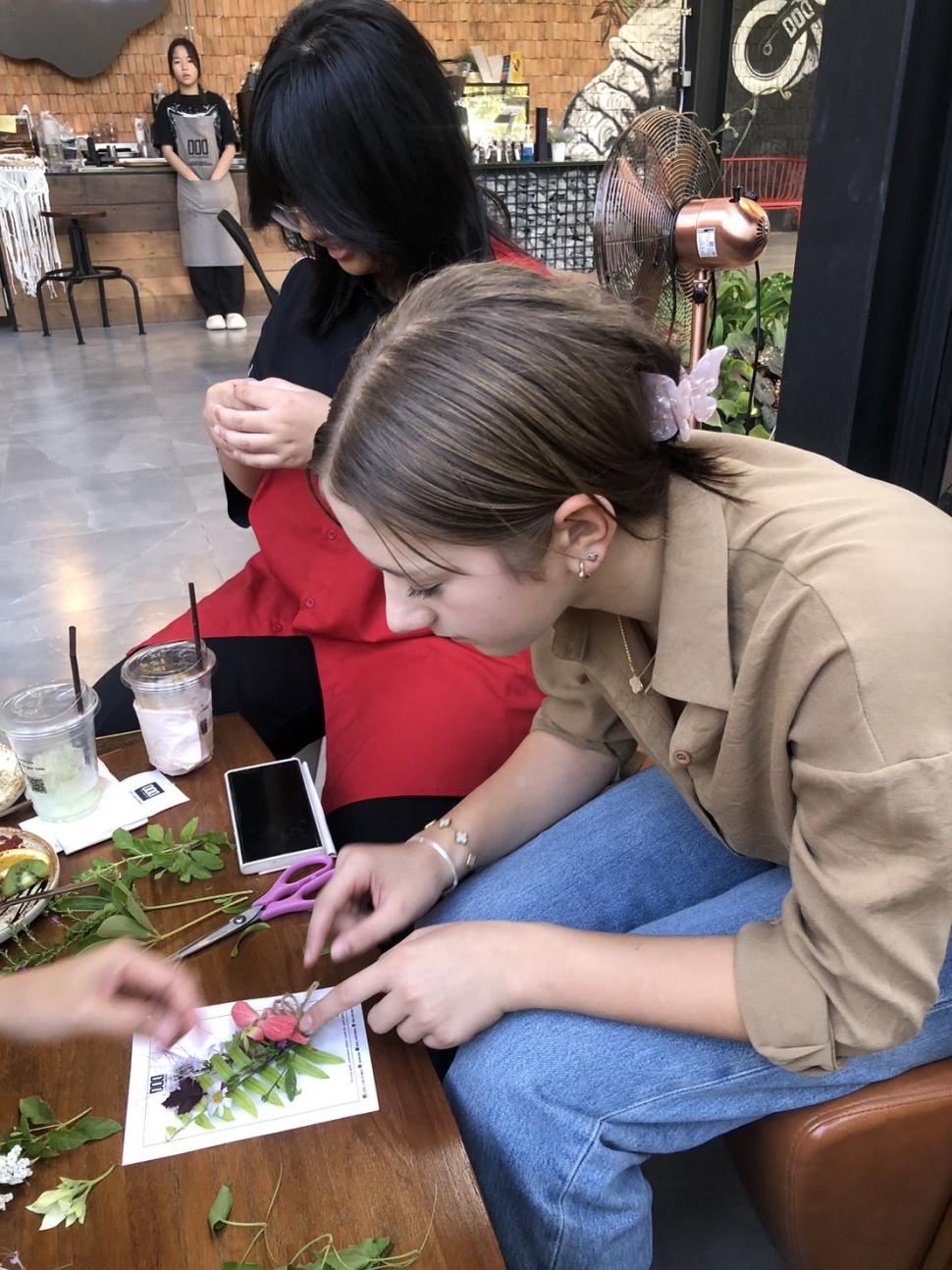นักเรียนแลกเปลี่ยนทำกิจกรรมกรอบรูป