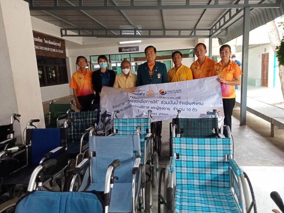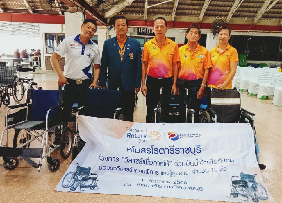 สโมสรโรตารีราชบุรีทำ โครงการ "วีลแชร์เพื่อการให้" ร่วมปันน้ำใจเพื่อสังคม มอบรถวีลแชร์แก่คนพิการ และผู้สูงอายุ จำนวน 10 คัน วันที่ 1 ธันวาคม 2566 ณ วิทยาลัยเทคนิคราชบุรี