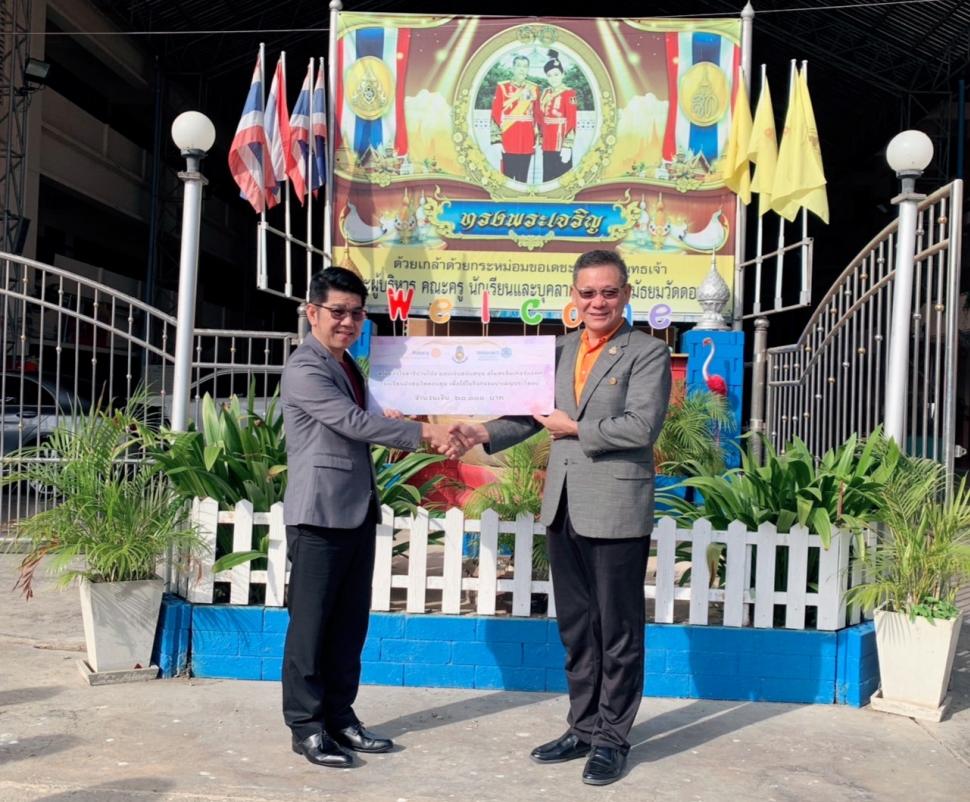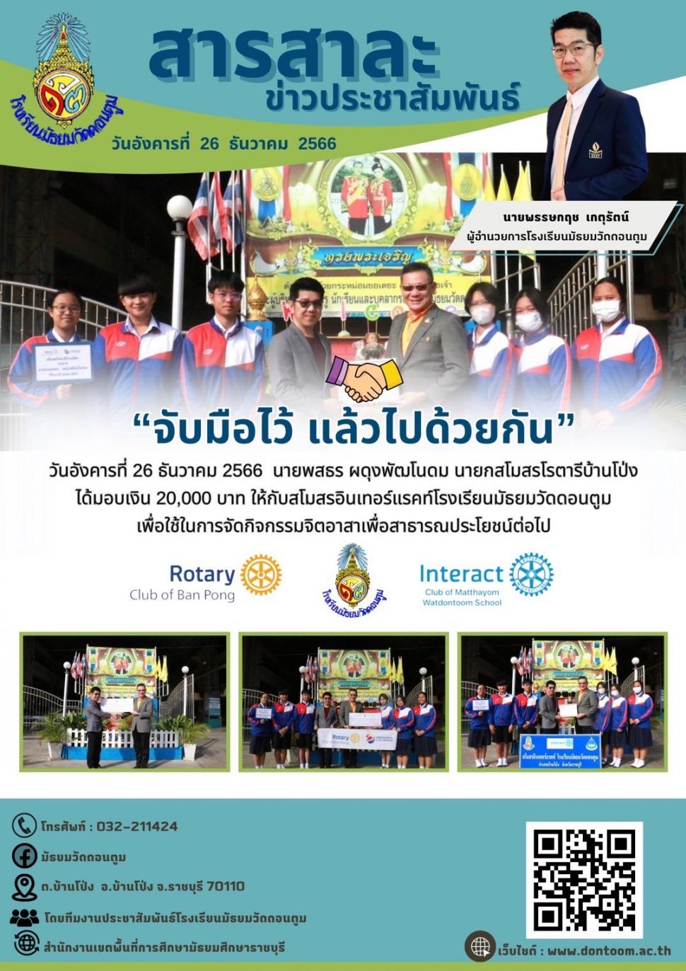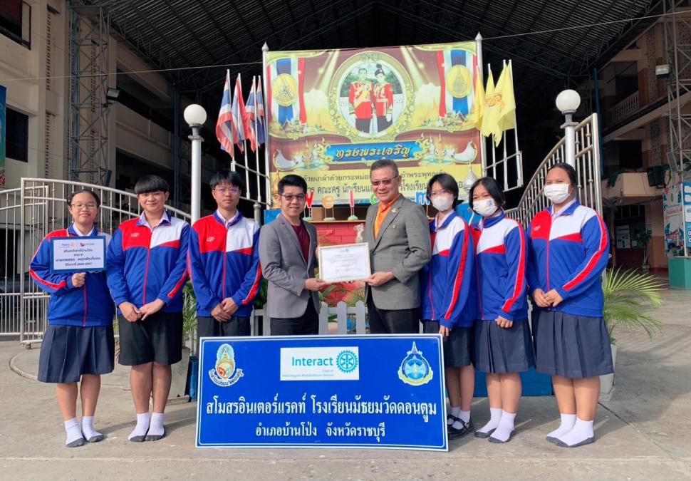 โดยได้รับเกียรติจากท่าน ผู้อำนวยการโรงเรียนมัธยมวัดดอนตูม ที่ได้ให้การสนับสนุนทุกๆกิจกรรมที่ทำร่วมกับสโมสรโรตารีบ้านโป่ง มาโดยตลอดเป็นผู้รับมอบ