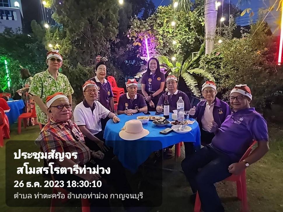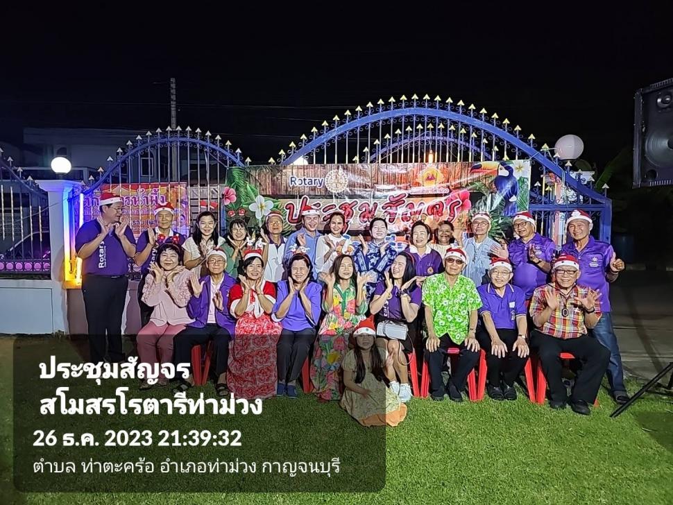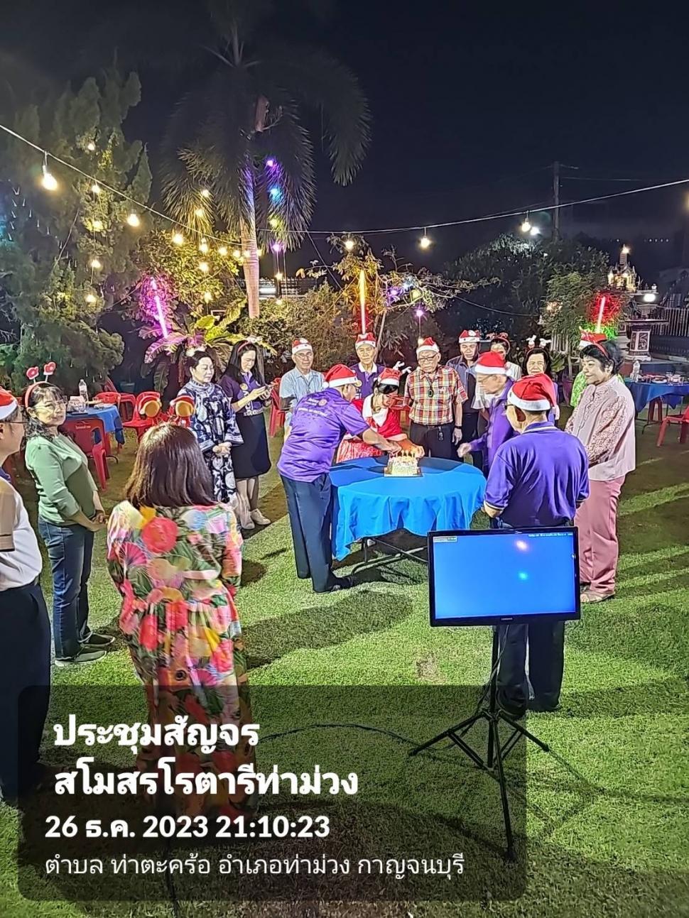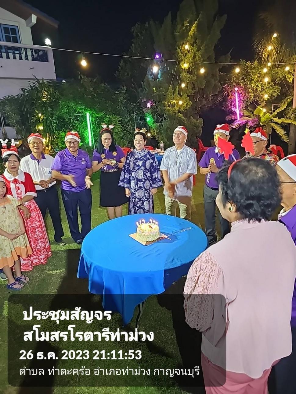 วันที่ 26 ธ.ค. 2566 สโมสรโรตารีท่าม่วงประชุมสัญจร สังสรรค์ส่งท้ายปีเก่าต้อนรับปีใหม่ และฉลองวันคล้ายวันเกิดสมาชิก ณ.บ้าน รทร.ประเชิญ เศรษฐกร ต.สำรอง อ.ท่าม่วง จ.กาญจนบุรี