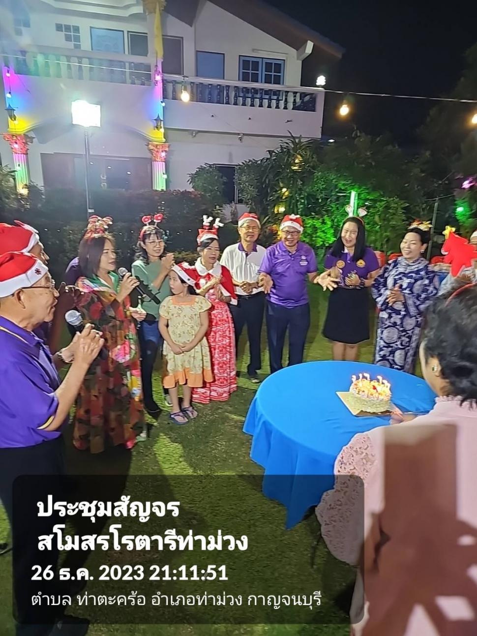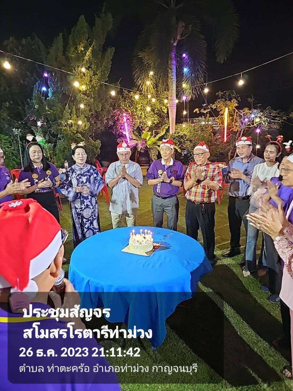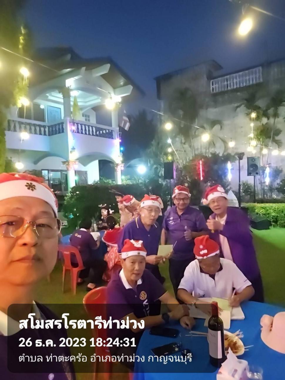 วันที่ 26 ธ.ค. 2566 สโมสรโรตารีท่าม่วงประชุมสัญจร สังสรรค์ส่งท้ายปีเก่าต้อนรับปีใหม่ และฉลองวันคล้ายวันเกิดสมาชิก ณ.บ้าน รทร.ประเชิญ เศรษฐกร ต.สำรอง อ.ท่าม่วง จ.กาญจนบุรี