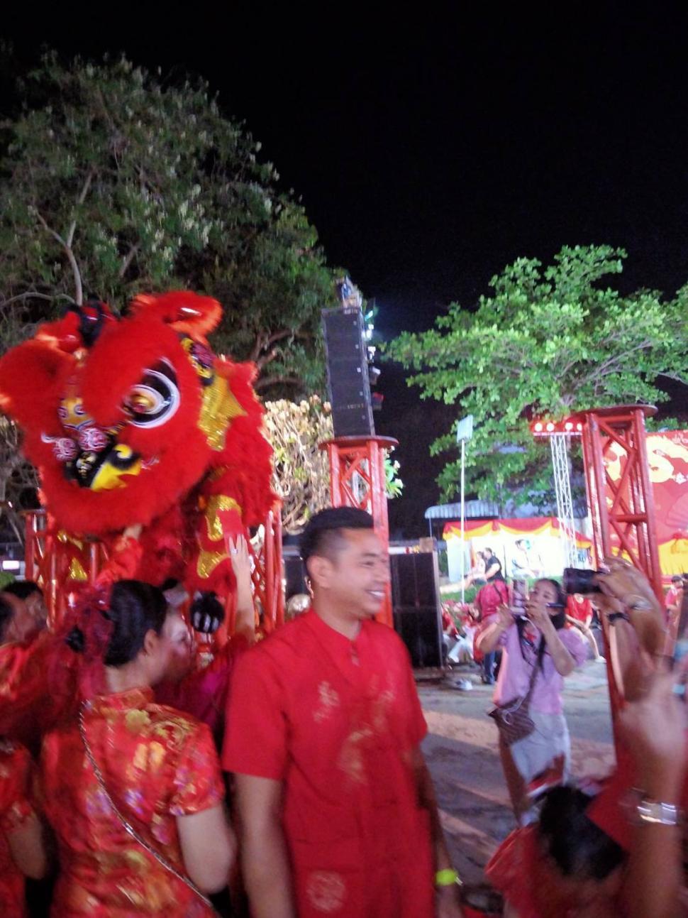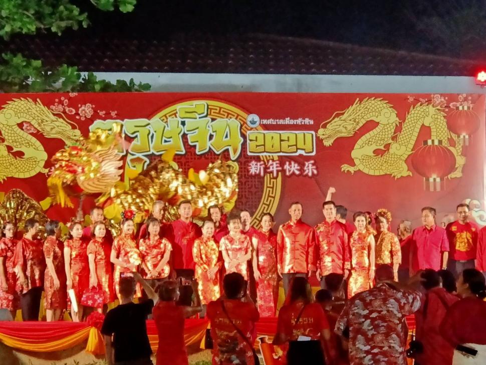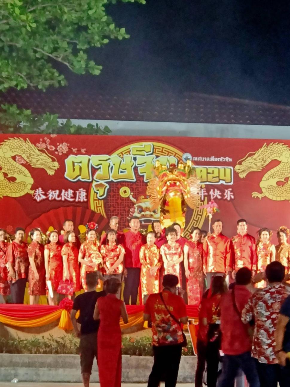 มีนายอำเภอหัวหิน เป็นประธาน นายกเทศมนตรีเมืองหัวหินกล่าววัตถุประสงค์ มีการผัดหมี่กระทะใหญ่แจกแขกผูรับเกียรติและประชาชนทั่วไปรวมถึงนักท่องเที่ยวและมีการเชิดสิงโตเพื่อเป็นการส่งเสริมการท่องเที่ยวในเทศกาลตรุษจีนในปีมังกรทองนี้