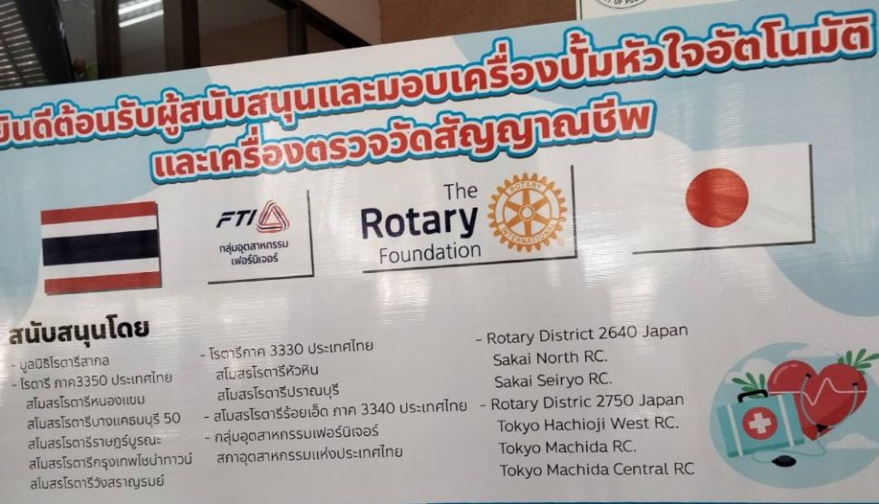 สโมสรโรตารีวังสราญรมย์ ภาค 3350  สโมสรโรตารีปราณบุรี  ภาค 3330 สโมสรโรตารีร้อยเอ็ดและ อผภ.เอกณรงค์ กองพันธ์ สโมสรโรตารีอุดรธานีภาค 3340 และ