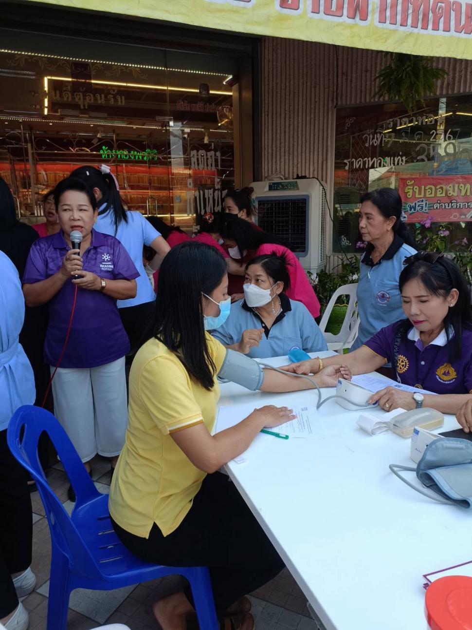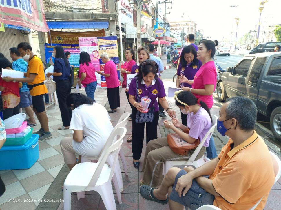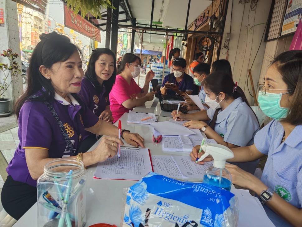 สโมสรโรตารีท่าม่วงร่วมกิจกรรมกับโรงพยาบาลสมเด็จพระสังฆราชองค์ที่ 19 ตรวจคัดกรองสุขภาพเจาะเลือดเบาหวาน ไขมันในเลือด ประเมินความเสี่ยงที่จะเกิดโรคหลอดเลือดหัวใจและเส้นเลือดสมองตีบ
