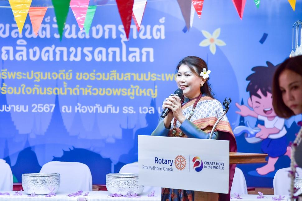 สโมสรฯประชุมประจำสัปดาห์ครั้งที่ 31/2566-2567 ร่วมกันสืบสานประเพณีไทย ซึ่งเป็นประเพณีเก่าแก่ งดงาม และเต็มไปด้วยบรรยากาศของความกตัญญู ความอบอุ่น ความสนุกสนาน ความเคารพซึ่งกันและกันโดยใช้ “น้ำ” เป็นสื่อในการเชื่อมสัมพันธไมตรี