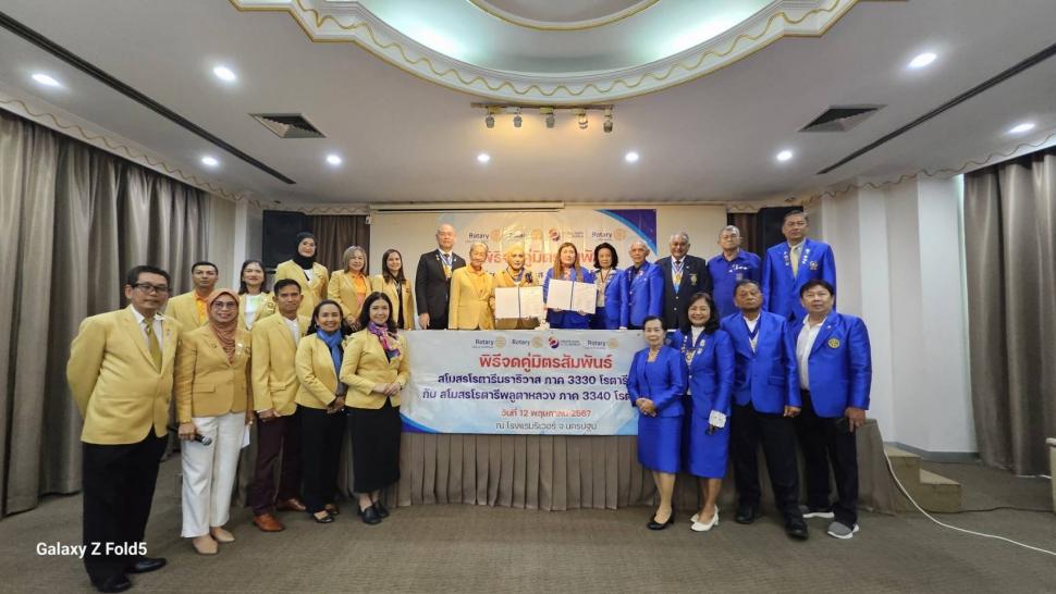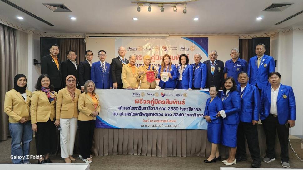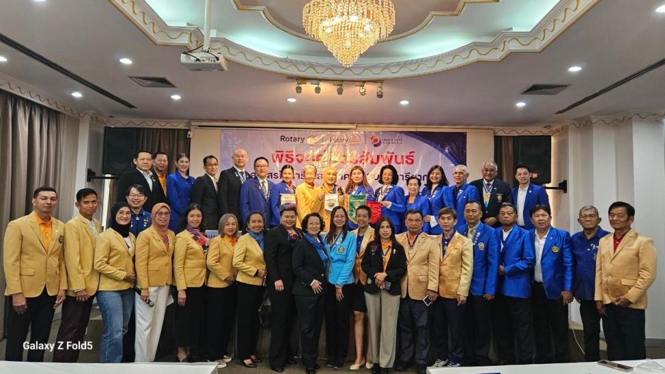 โรตารีสากล พร้อมสมาชิก โดยมีผู้ว่าการภาค ดร.ชัชวาล เตละวาณิชย์ แอนน์พนิตา เตละวาณิชย์ ภาค 3330 โรตารีสากล อดีตผู้การภาคประทีบสิงห์ มาโลทรา ภาค3340 อดีตผู้ว่าการภาคเฉลิมฉัตร จันทร์อินทร์ อดีตผู้ว่าการภาคสมภพ ธีระสานต์ อดีตผู้การภาคสกนธ์ อึ่งสร้อยทอง ร่วมด้วยนายกสโมสรโรตารีสงขลา นายกสโมสรโรตารีกรับใหญ่พร้อมสมาชิก ร่วมเป็นเกียรติในพิธีจดคู่มิตร ณ โรงแรมริเวอร์ ห้องสายชล จังหวัดนครปฐม เวลา 11.00 น. เมื่อวันที่ 12 พฤษภาคม 2567
