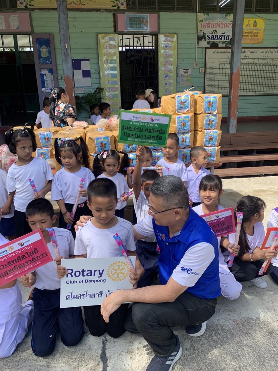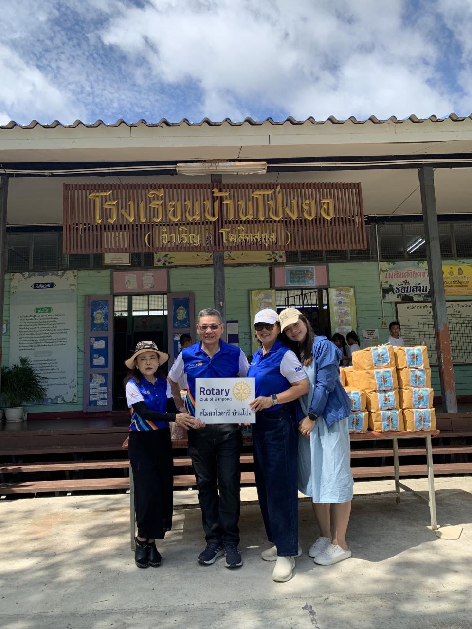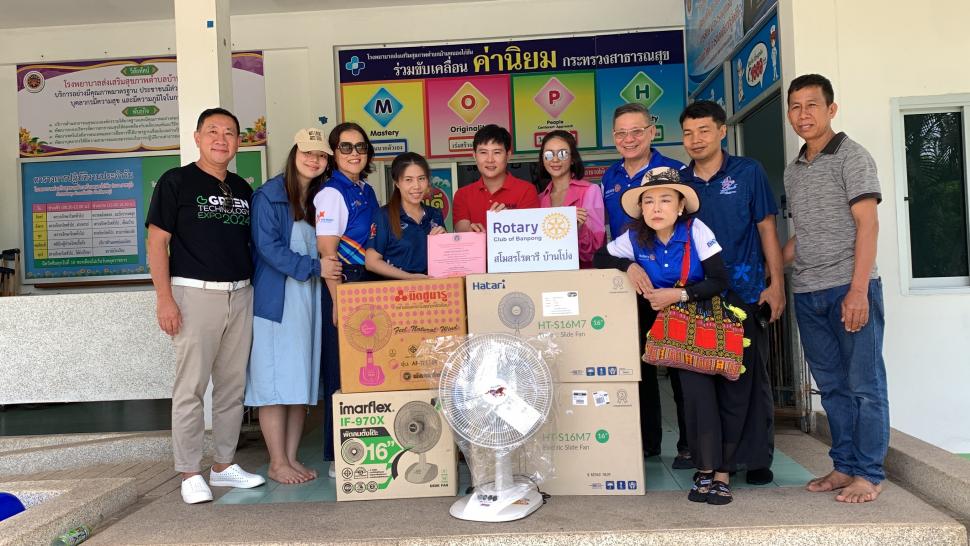 7 มิถุนายน 2567 สโมสรโรตารีบ้านโป่ง นายกพสธร ผดุงพัฒโนดม และแอนน์พร้อมด้วยอดีตนายก ร่วมบริจาคก๋วยเตี๋ยว และขนมแจกเด็กๆ นักเรียน และพัดลมอุปกรณ์เครื่องใช้ให้กับ รพ.สต หนองไก่ขัน