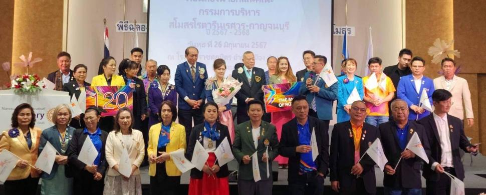 วันที่ 26 มิถุนายน 2567 สโมสรโรตารีสนามจันทร์ นำโดย นย.สุชาติ เอกพัชรวรรณ พร้อมด้วยสมาชิกสโมสรและแอนน์ ร่วมงานพิธีสถาปนา นายกมาริณี ภวัครานนท์ นายกสโมสรโรตารีนเรศวร-กาญจนบุรี และคณะกรรมการบริหาร รุ่น 120 ของปีโรตารี 2567-2568 ภาค 3330 ณ ห้อง RS Grand โรงแรมราชศุภมิตร จ.กาญจนบุรี