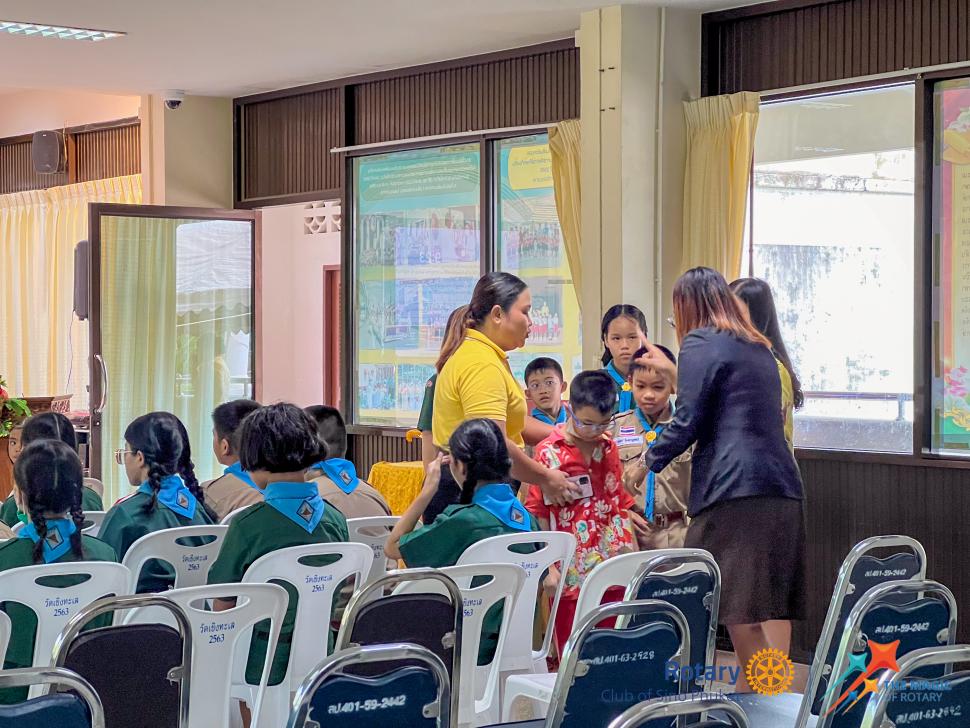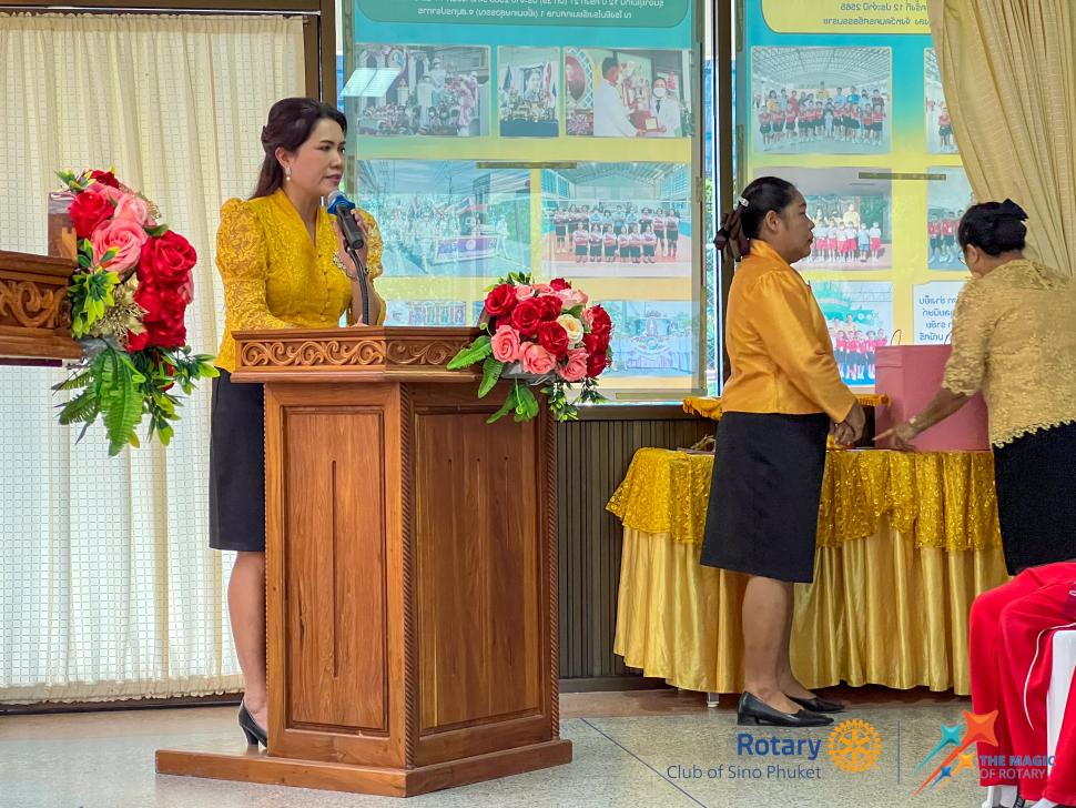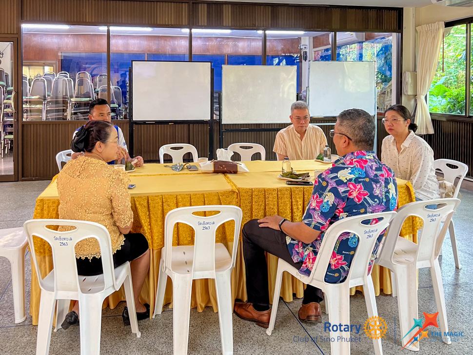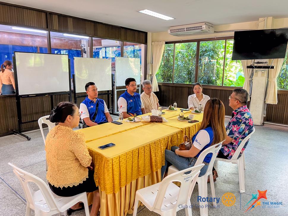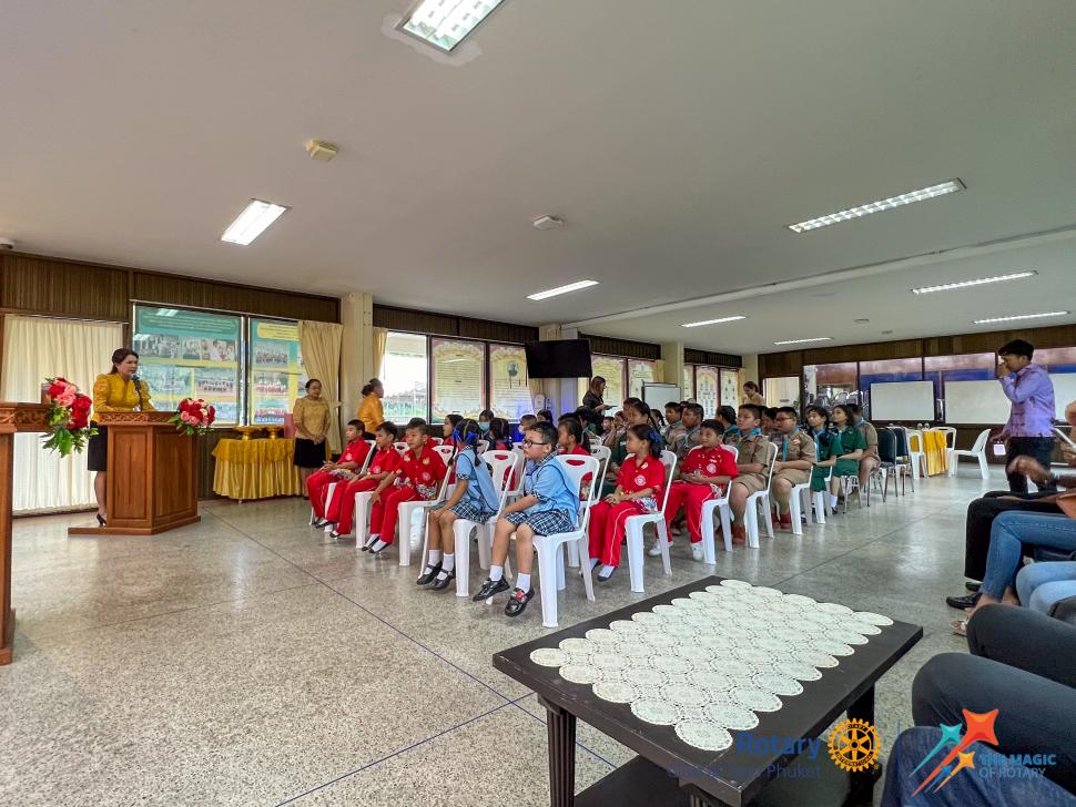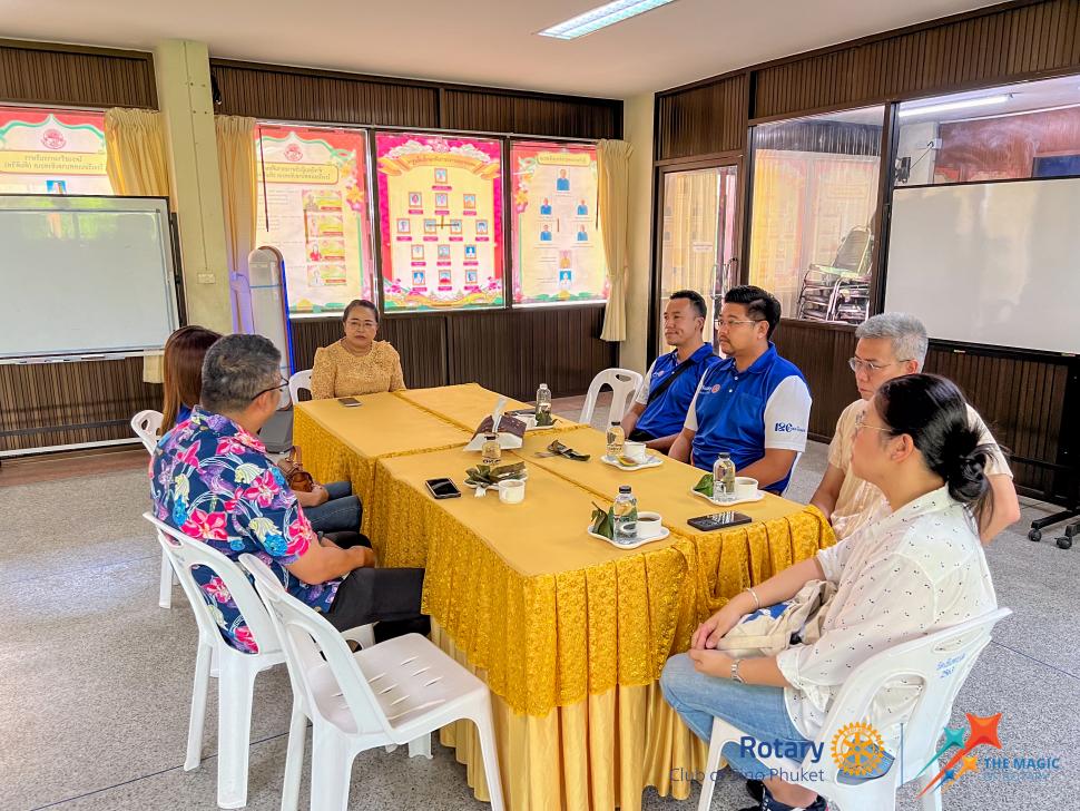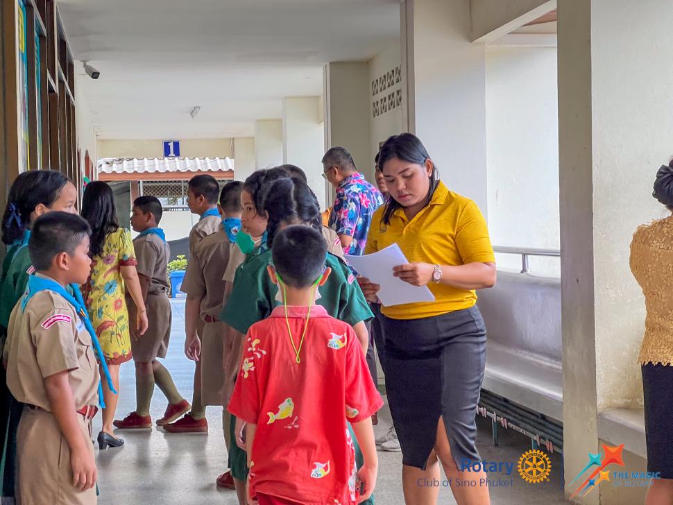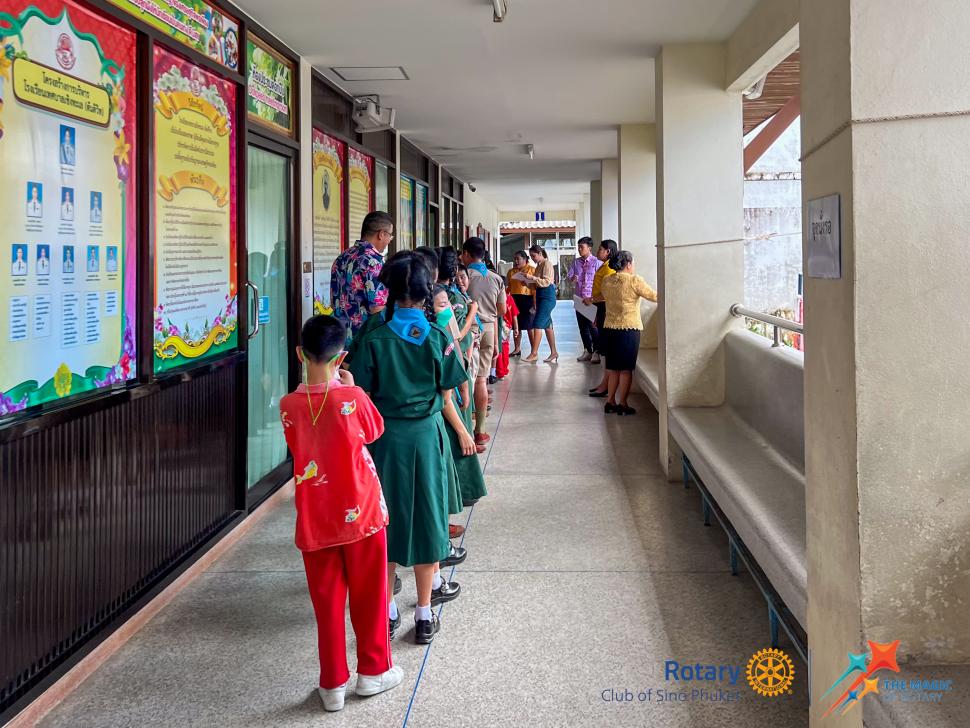 นายกเศวต โกยสมบูรณ์ สโมสรโรตารีชิโนภูเก็ต และสมาชิก ได้เข้ามอบแว่นตาจำนวน 60 ชิ้น ซึ่งมีร้านแว่นใกล้โรงเรียนที่เข้าร่วมโครงการ ให้ราคาพิเศษเพื่อสนับสนุนโครงการนี้ให้แก่เด็กนักเรียนที่มีปัญหาด้านสายตา Sangthong Eyesstudio โดยมี ผู้อำนวยการธนวรรณ อารีย์พงศ์ ได้จัดพิธีการมอบให้แว่นตาให้เด็กๆทุกคนภายในห้องประชุมโรงเรียน ซึ่งโครงการนี้มีเป้าหมาย คือ แก้ปัญหาเด็กที่ไม่ทราบว่าตัวเองมีค่าสายตา และเมื่อการมองเห็นดีขึ้น การเรียนก็จะดีขึ้นตามการมองเห็น ซึ่งได้รับการสนับสนุนเงินเพื่อจัดซื้อโดย สโมสรโรตารีป่าตองบีช Rotary Club of Patong Beach