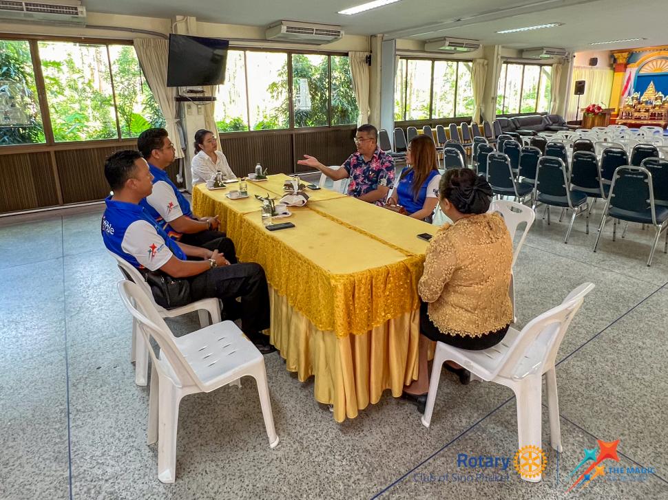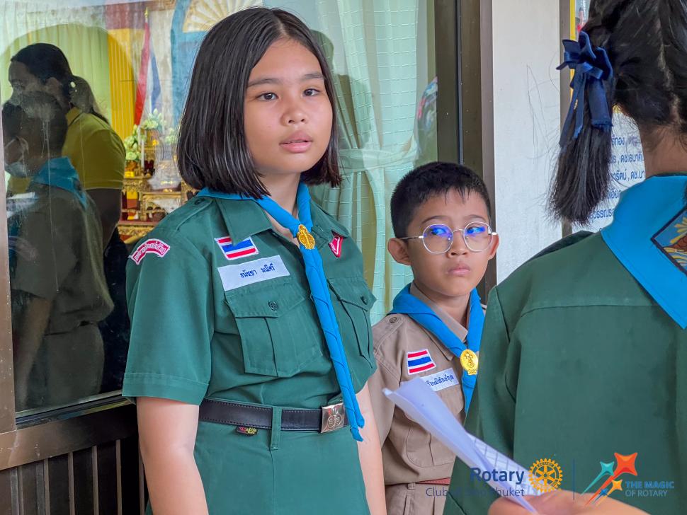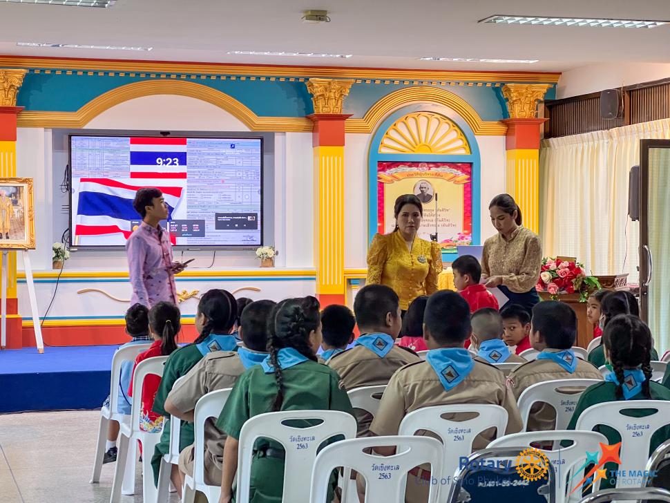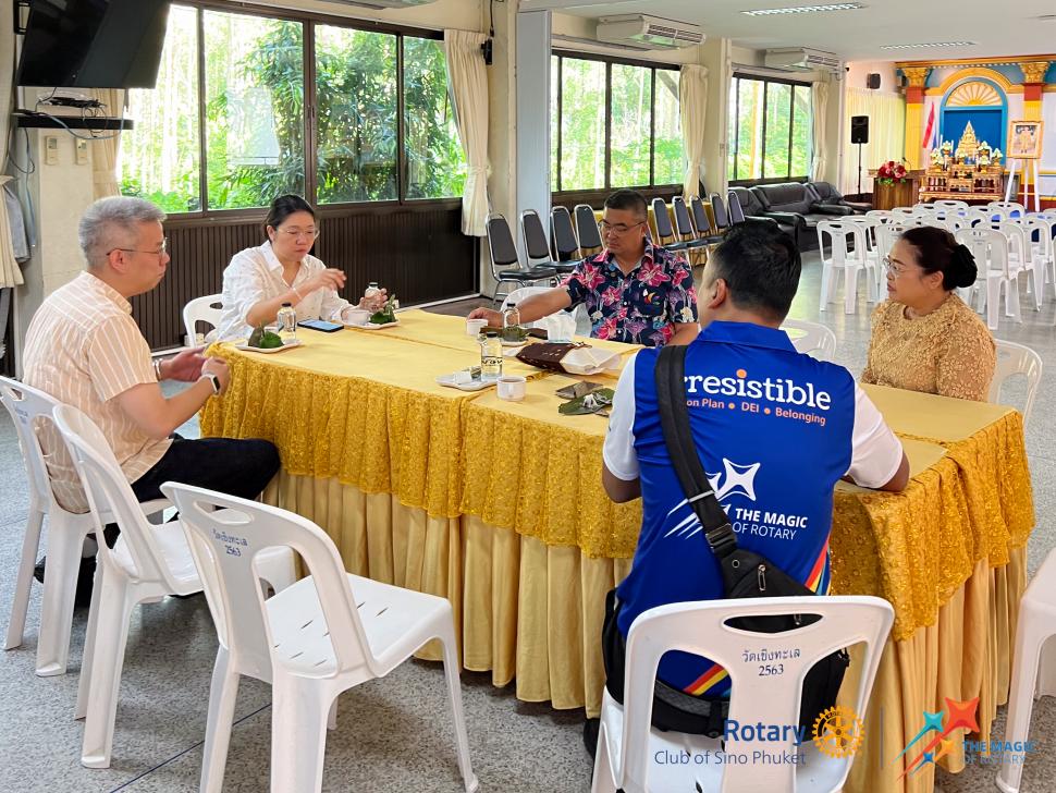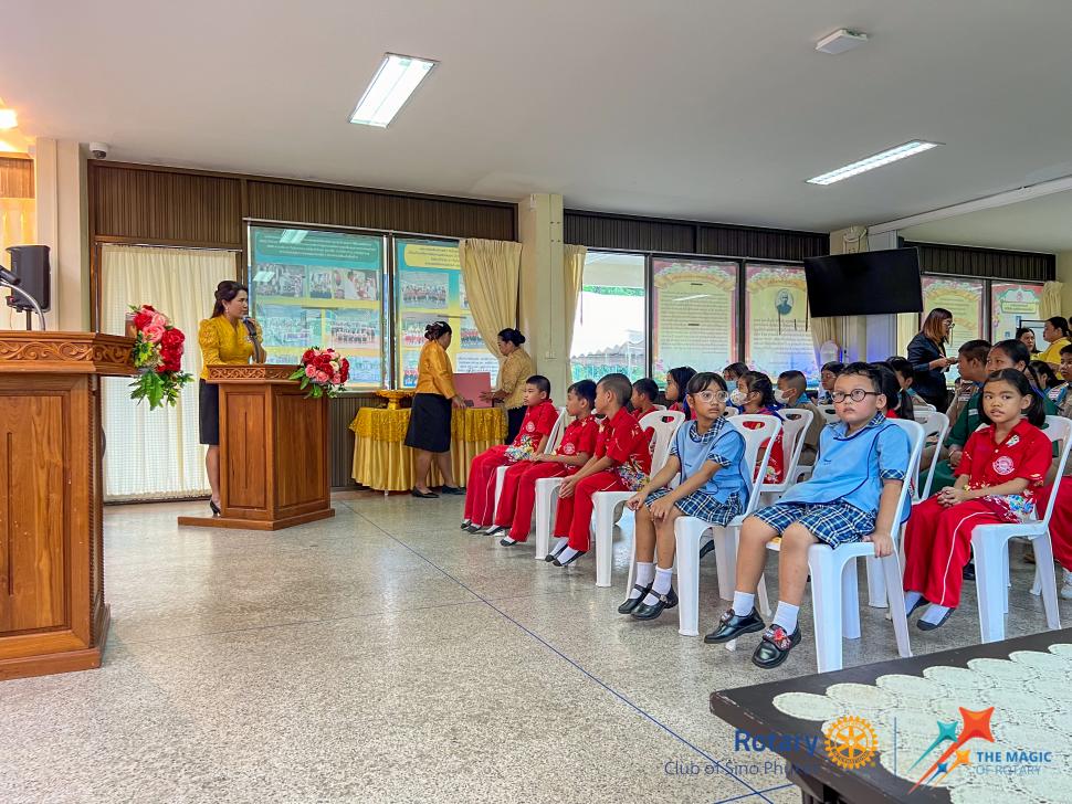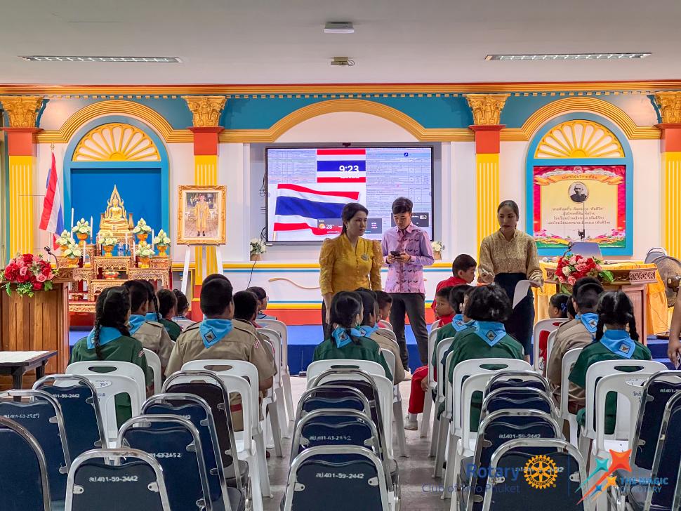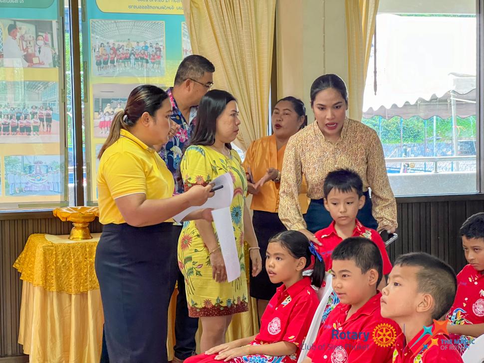 นายกเศวต โกยสมบูรณ์ สโมสรโรตารีชิโนภูเก็ต และสมาชิก ได้เข้ามอบแว่นตาจำนวน 60 ชิ้น ซึ่งมีร้านแว่นใกล้โรงเรียนที่เข้าร่วมโครงการ ให้ราคาพิเศษเพื่อสนับสนุนโครงการนี้ให้แก่เด็กนักเรียนที่มีปัญหาด้านสายตา Sangthong Eyesstudio โดยมี ผู้อำนวยการธนวรรณ อารีย์พงศ์ ได้จัดพิธีการมอบให้แว่นตาให้เด็กๆทุกคนภายในห้องประชุมโรงเรียน ซึ่งโครงการนี้มีเป้าหมาย คือ แก้ปัญหาเด็กที่ไม่ทราบว่าตัวเองมีค่าสายตา และเมื่อการมองเห็นดีขึ้น การเรียนก็จะดีขึ้นตามการมองเห็น ซึ่งได้รับการสนับสนุนเงินเพื่อจัดซื้อโดย สโมสรโรตารีป่าตองบีช Rotary Club of Patong Beach