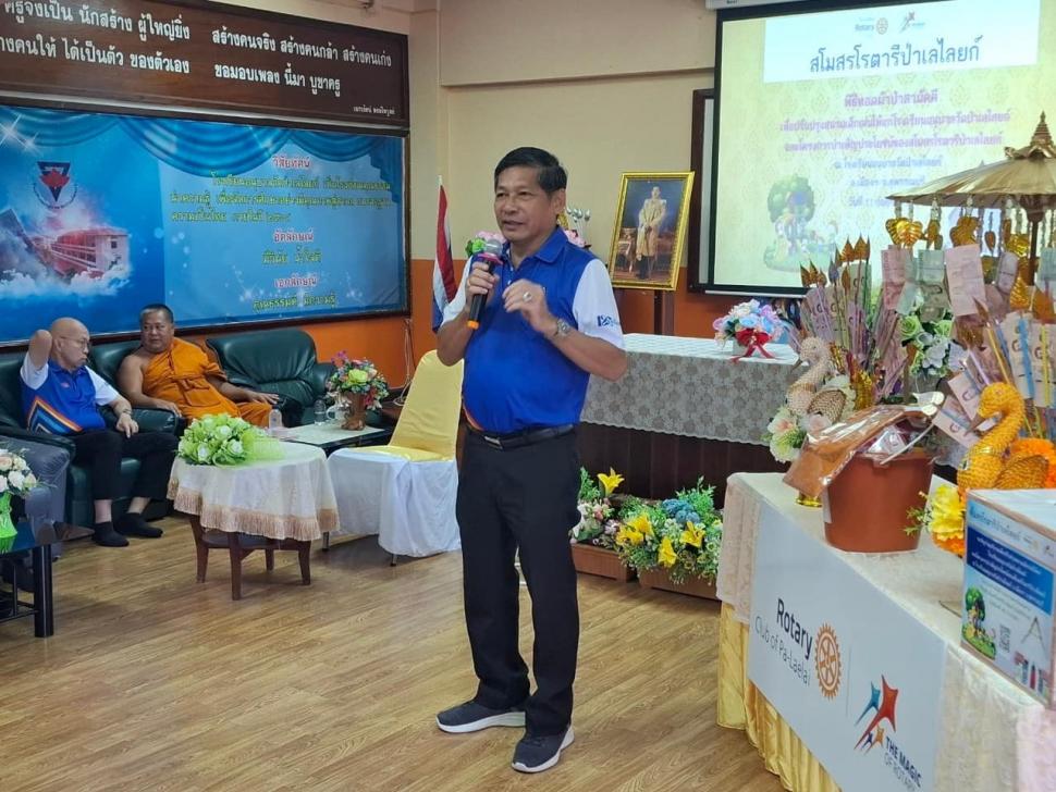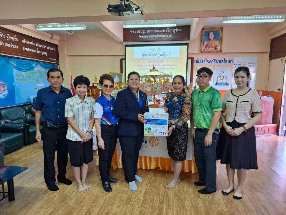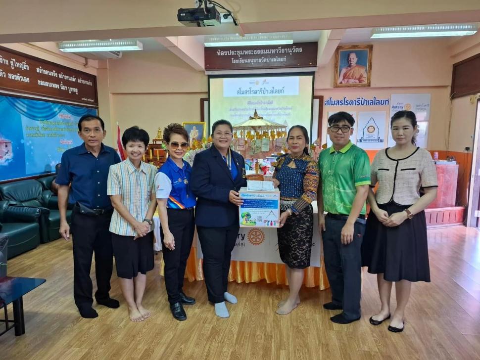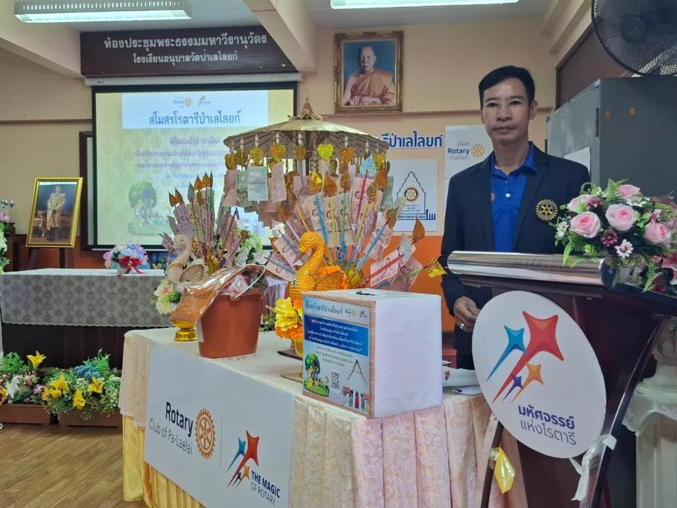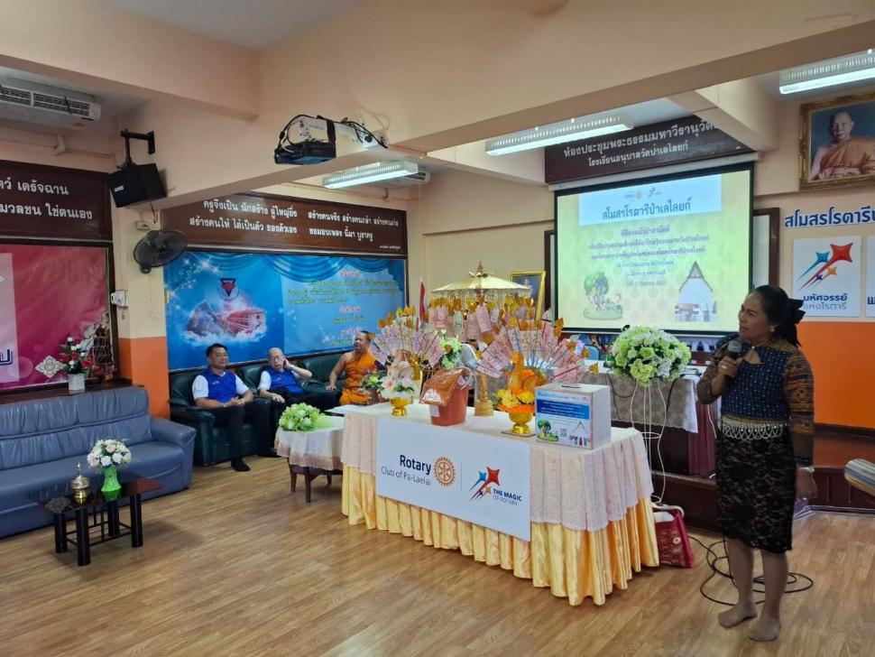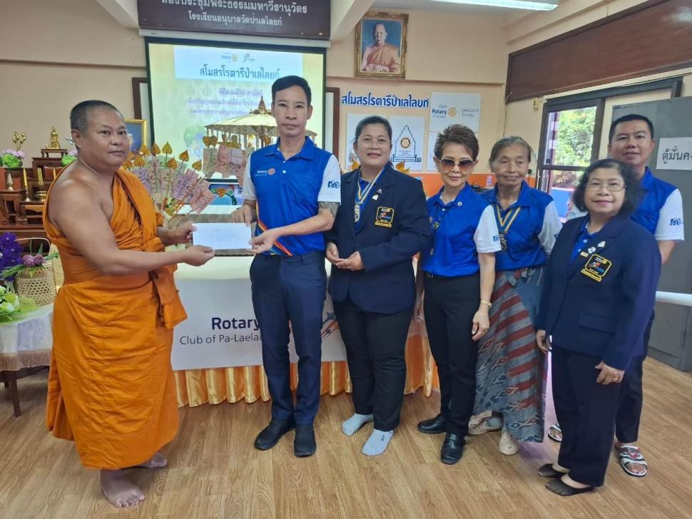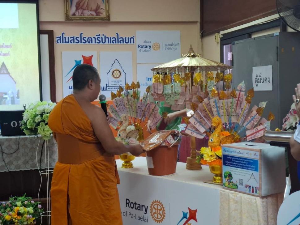 นายกณธภร ทวีอุดมโชติ พร้อมทั้งอดีตนายก สมาชิก โรตารีแอนน์ และแขกผู้มีเกียรติทุกท่าน ร่วมทอดผ้าป่าสามัคคี เพื่อปรับปรุงสนามเด็กเล่นโรงเรียนอนุบาลวัดป่าเลไลยก์