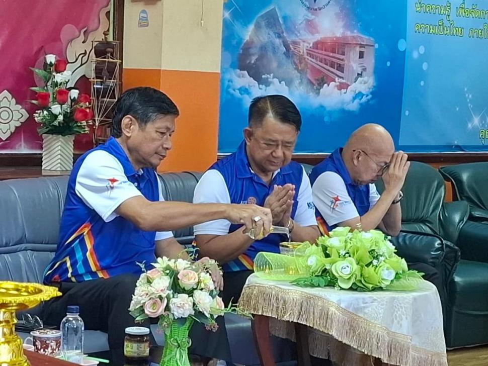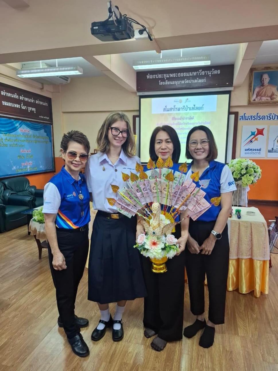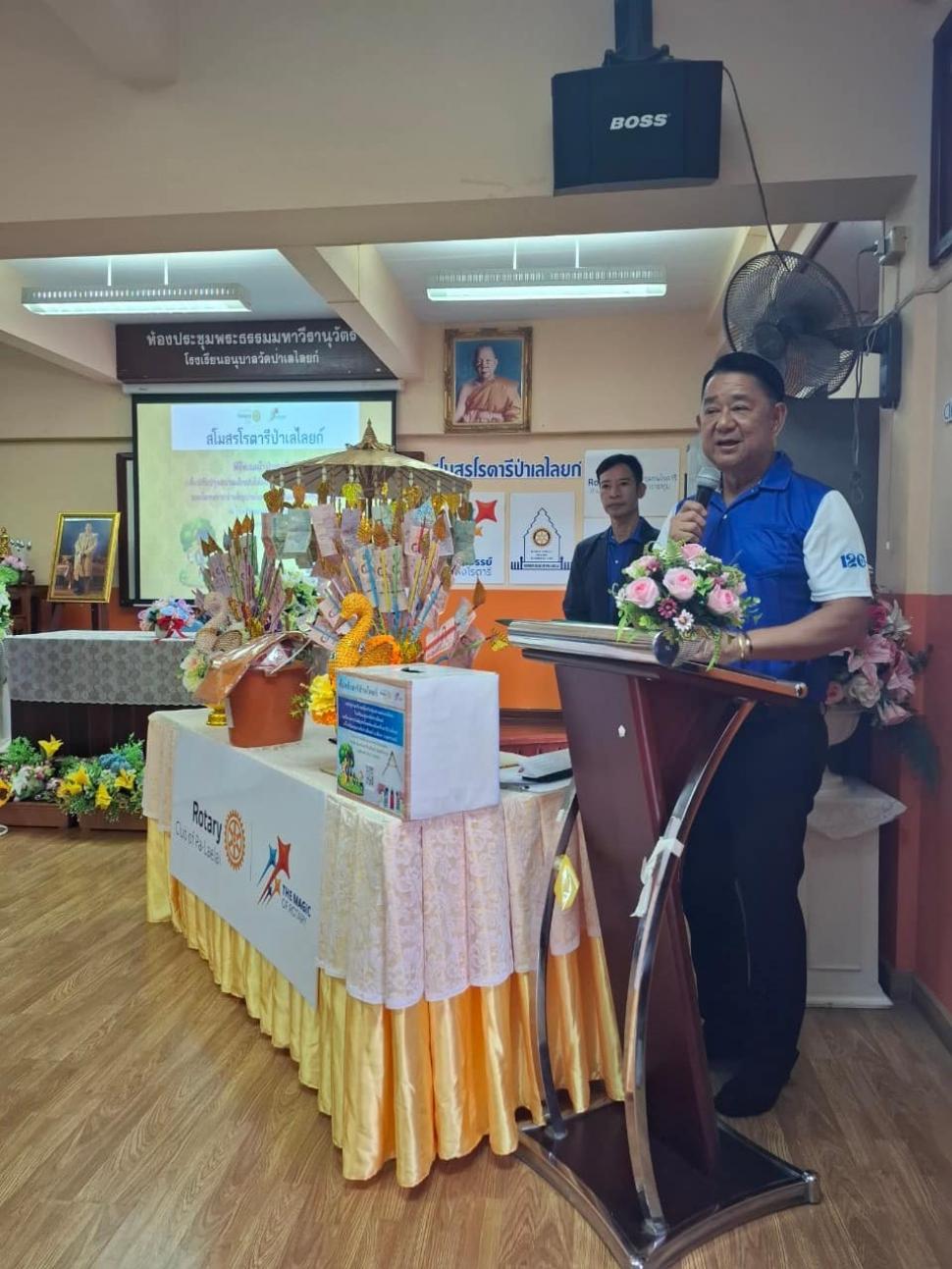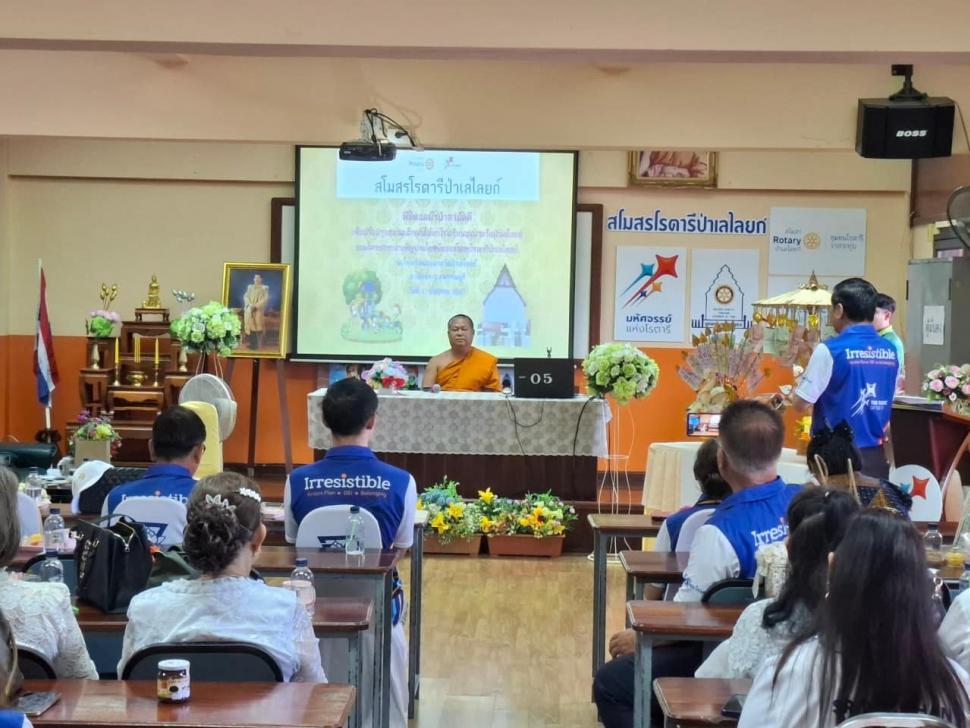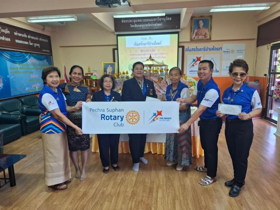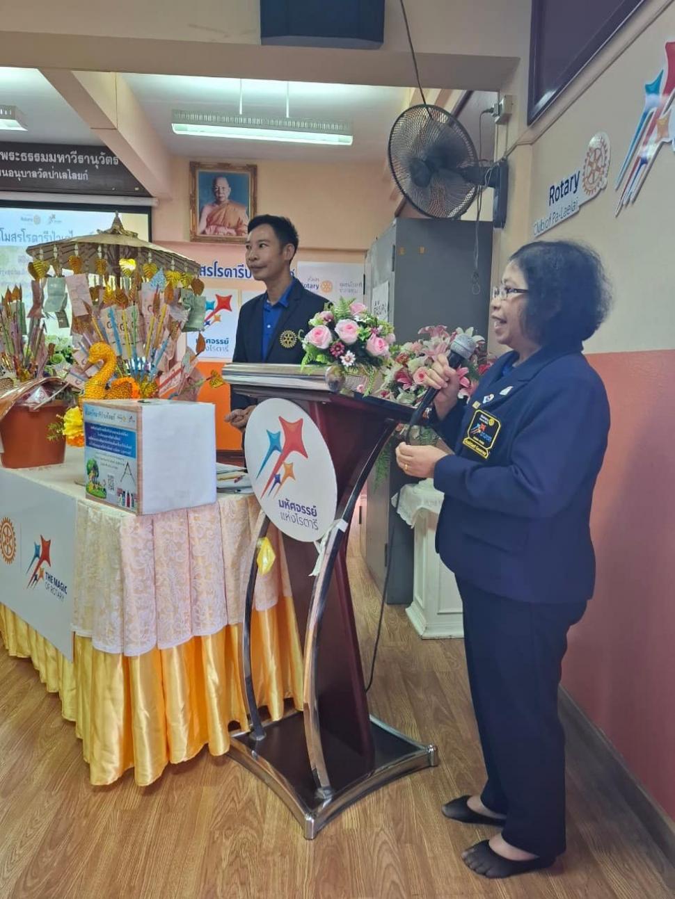 นายกณธภร ทวีอุดมโชติ พร้อมทั้งอดีตนายก สมาชิก โรตารีแอนน์ และแขกผู้มีเกียรติทุกท่าน ร่วมทอดผ้าป่าสามัคคี เพื่อปรับปรุงสนามเด็กเล่นโรงเรียนอนุบาลวัดป่าเลไลยก์