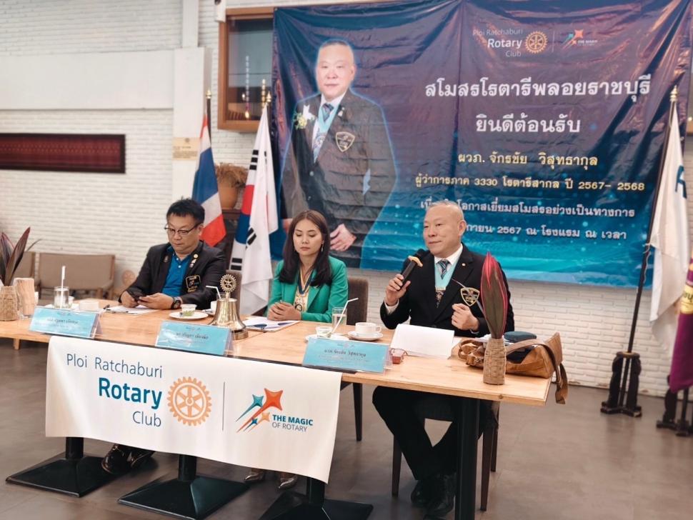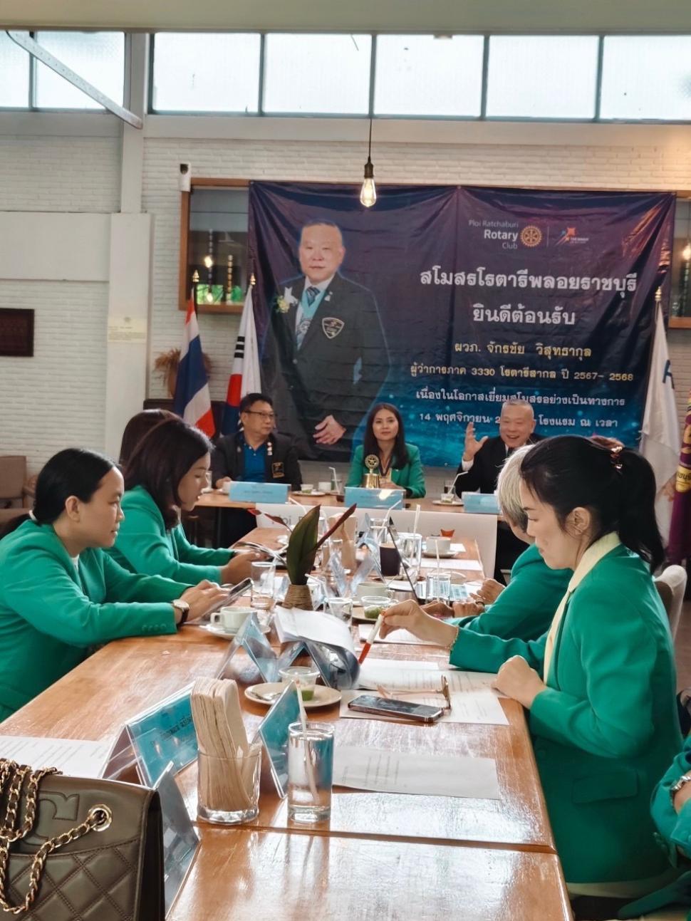 สโมสรโรตารีพลอยราชบุรี ขอขอบพระคุณผู้ว่าการภาค 3330 โรตารีสากล ผวภ.จักรชัย วิสุทธากุล ผู้ว่าการภาค 3330 โรตารีสากล และผชภ. ปฐมพร  เจียสกุล ผู้ช่วยผู้ว่าการภาค พื้นที่19 ที่มาเยี่ยมสโมสรอย่างเป็นทางการ พร้อมทั้งประชุมประจำสัปดาห์ครั้งที่10  วันที่ 14 พฤศจิกายน 2567 เวลา 14.00-19.00 น. ณ ห้องครัวทอข้าว โรงแรม ณเวลา พร้อมทั้งให้แนวคิด  ให้ความรู้กี่ยวกับโรตารีให้สมาชิกฟัง เกี่ยวกับเรื่อง  DEI  ,  สนเทศโรตารี  จากนั้นประดับเข็มยกย่องผู้บริจาคเงินเข้ามูลนิธิโรตารี