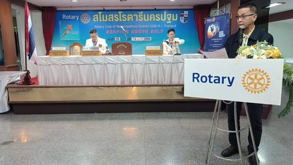 เมื่อวันที่ 14 มกราคม 2568 สโมสรโรตารีนครปฐม ได้จัดการประชุมประจำสัปดาห์ ครั้งที่ 24 ปีโรตารี 2567-2568 ณ ห้องทับทิม โรงแรมเวล จังหวัดนครปฐม โดยมี นย.ฐิติพงศ์ วัฒนาอนันต์กุล นายกสโมสร เป็นผู้ดำเนินการประชุมในครั้งนี้ ในการประชุมมีวาระ