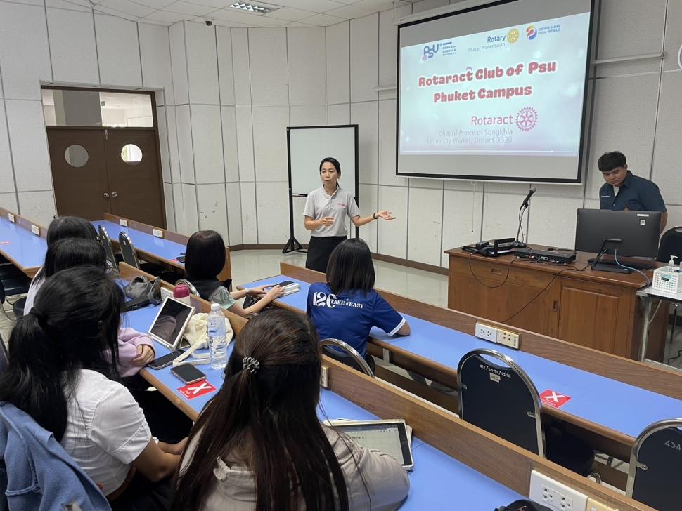 วันที่ 21 สิงหาคม 2567 นย.สุทธดา ณิชวิมลิน และ อน.พีรกานต์ เวชกุล ประธานฝ่ายเยาวชน เข้าร่วมประชุมกับสโมสรโรทาแรคท์เพื่อเตรียมงานกิจกรรมของสโมสรโรทาแรคท์ มหาวิทยาลัยสงขลานครินทร์ วิทยาเขตภูเก็ต