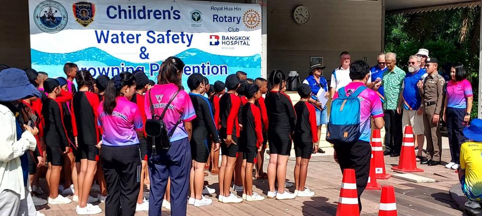 Our club carried out another 3-day session of Water Safety & Drowning Prevention training for 50 students of Anuban Hua Hin Ban Nong Khon School on 21-23 May. Conducted at the Navy Phirom Hotel at the beach, the children ages 10 to 12 years were trained by certified instructors from the Pran Buri Marine Police, Hua Hin municipality, Sawang Thammasathan Rescue Foundation and Hua Hin Hospital.