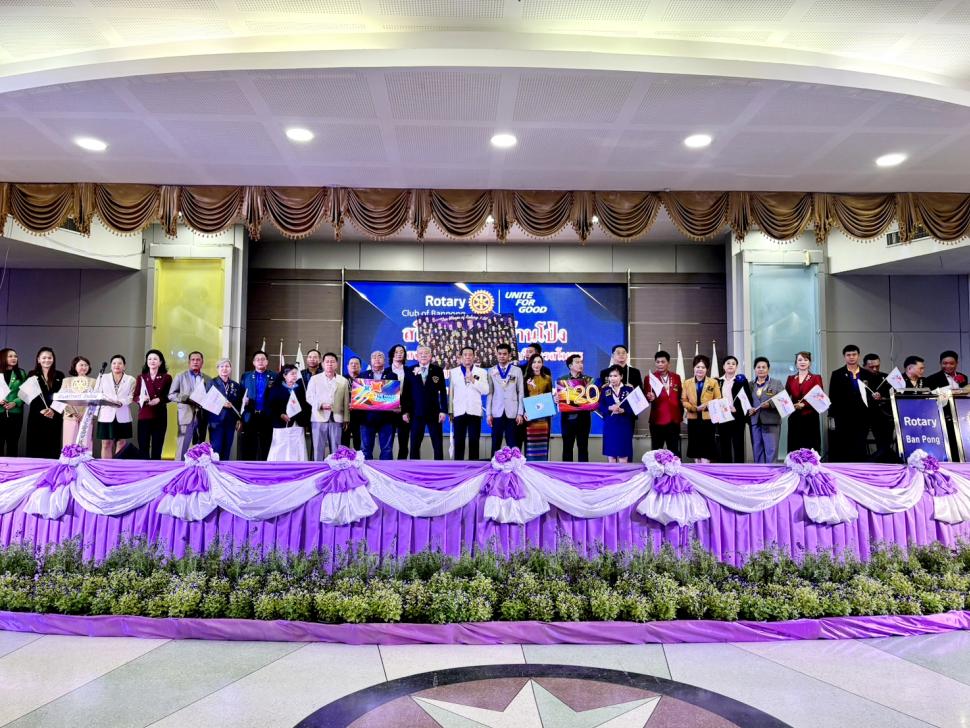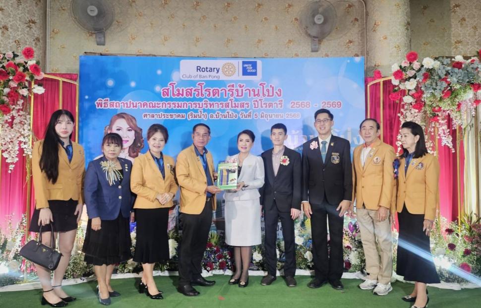 สโมสรโรตารีนเรศวร-กาญจนบุรี ภาค 3330 โรตารีสากล นำโดยนายกรับเลือกสะอาด ทั่นเส้ง พร้อมด้วยนายกและสมาชิกสโมสรฯ ร่วมงานพิธีสถาปนานายก และคณะกรรมการบริหารสโมสรโรตารีบ้านโป่ง เพื่อแสดงความยินดีกับนายกรับเลือกจณิตา วัฒนมะโน ในโอกาสขึ้นรับตำแหน่งนายกสโมสรโรตารีบ้านโป่ง ปีโรตารี 2568-2569 ณ ศาาประชาคม (ริมน้ำ) อ.บ้านโป่ง จ.ราชบุรี