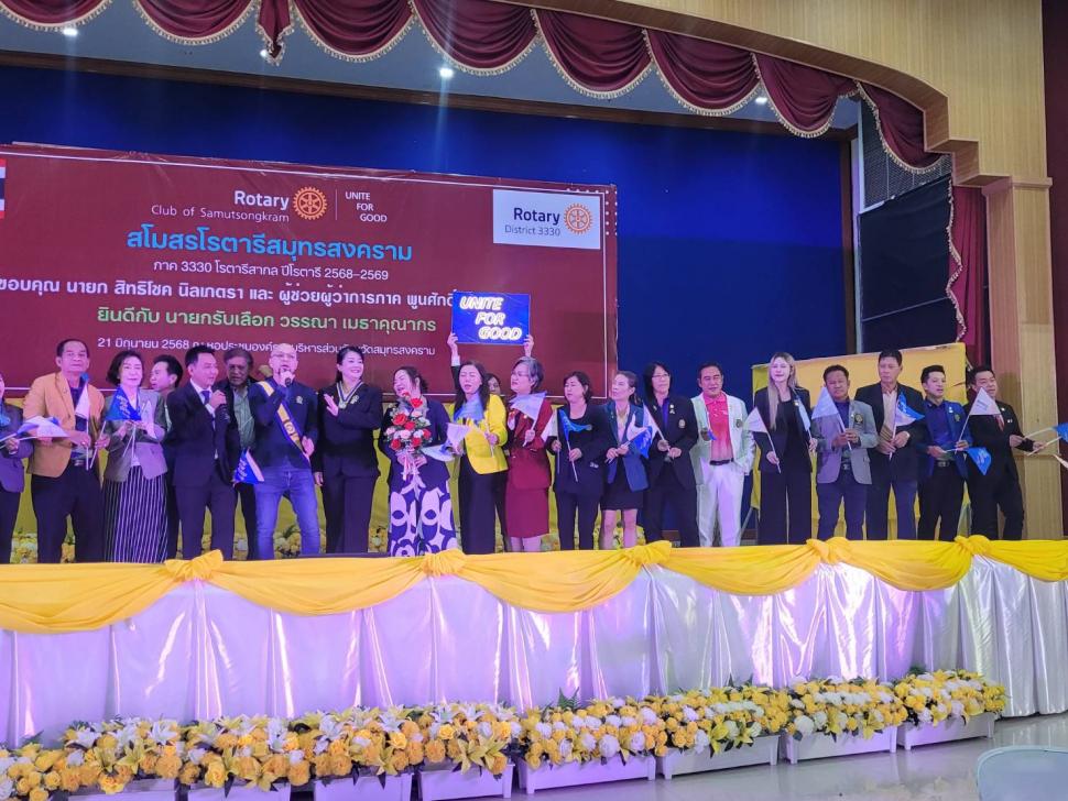 สโมสรโรตารีสนามจันทร์เข้าร่วมแสดงความยินดี ในพิธีสถาปนานายก และคณะกรรมการบริหารสโมสรโรตารีสมุทรสงคราม ปีบริหาร 2568-2569