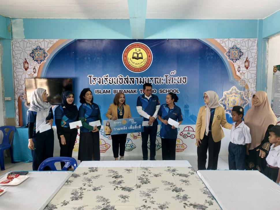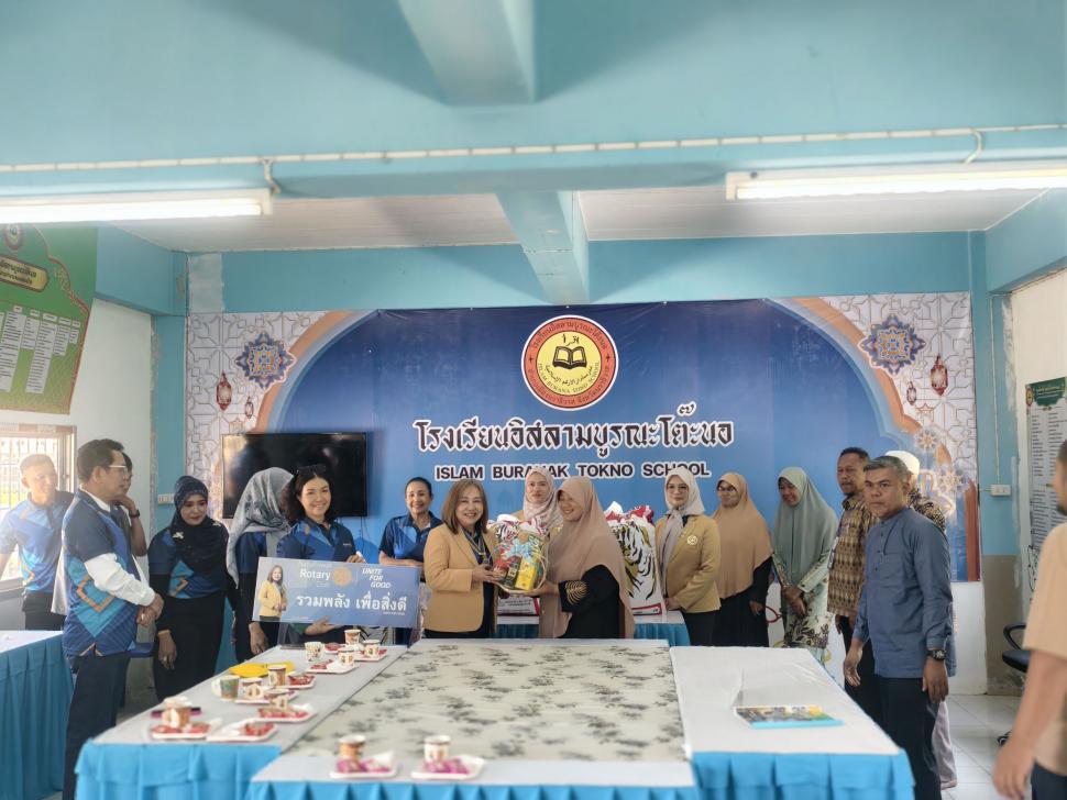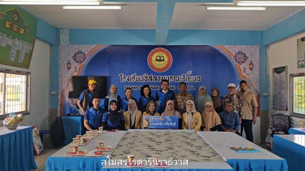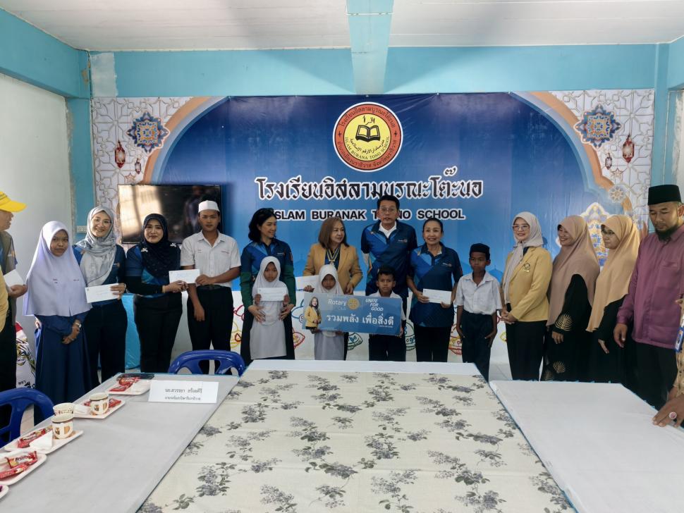 วันพฤหัสบดี ที่31กรกฎาคม2568 สโมสรโรตารีนราธิวาส นำโดยนายกสวรรยา สร้อยคีรี และสมาชิก เดินทางมอบทุนการศึกษาให้กับนักเรียน เรียนดีแต่ขาดแคลนทุนทรัพย์ โรงเรียนอิสลามบูรณะโต๊ะนอ ต.มะนังตายอ อ.เมือง จ.นราธิวาส และมอบข้าวสารจำนวน4กระสอบ