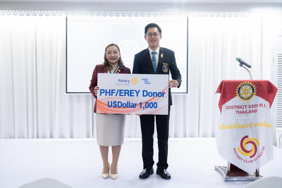 อีกทั้งได้ร่วมบริจาค PHE / EREY Donor U$Dollar 1,000 ผ่านทางผู้ว่าการภาค 3330