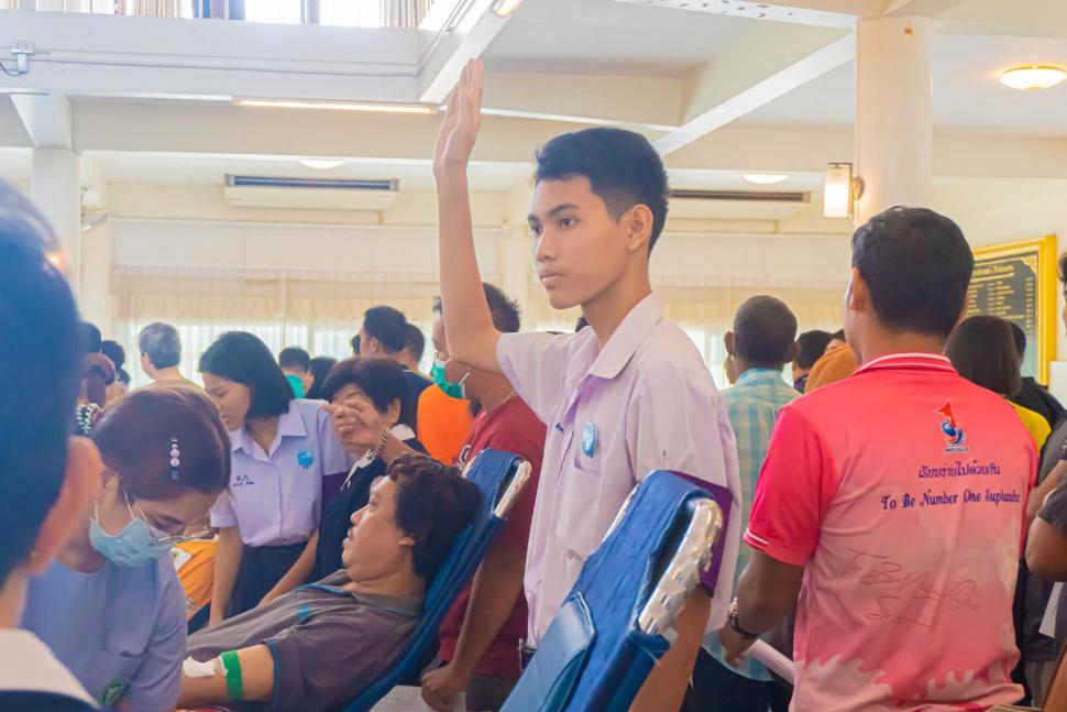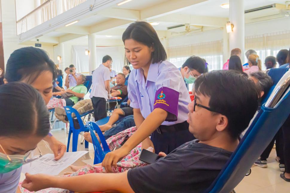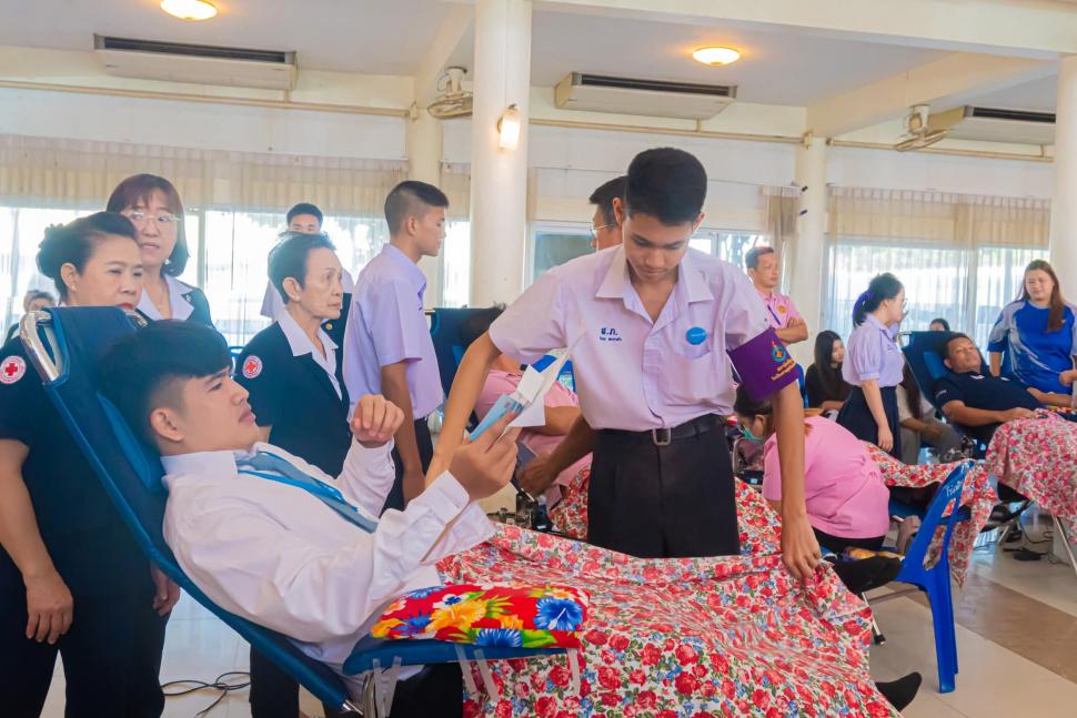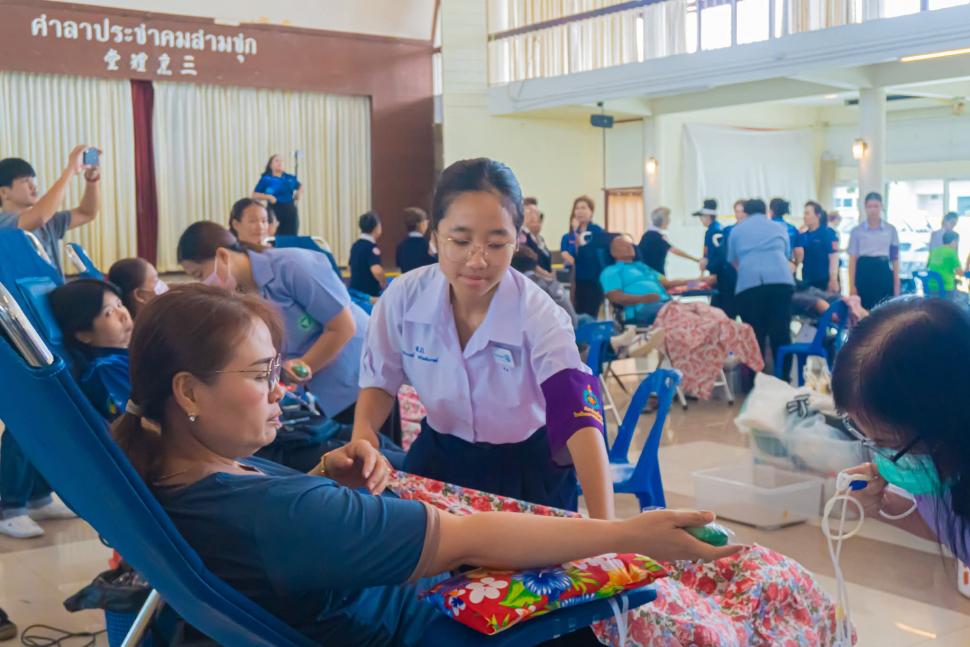 สโมสรอินเทอร์แรคท์โรงเรียนสามชุกรัตนโภคาราม บริการผู้เข้าร่วมบริจาคโลหิต