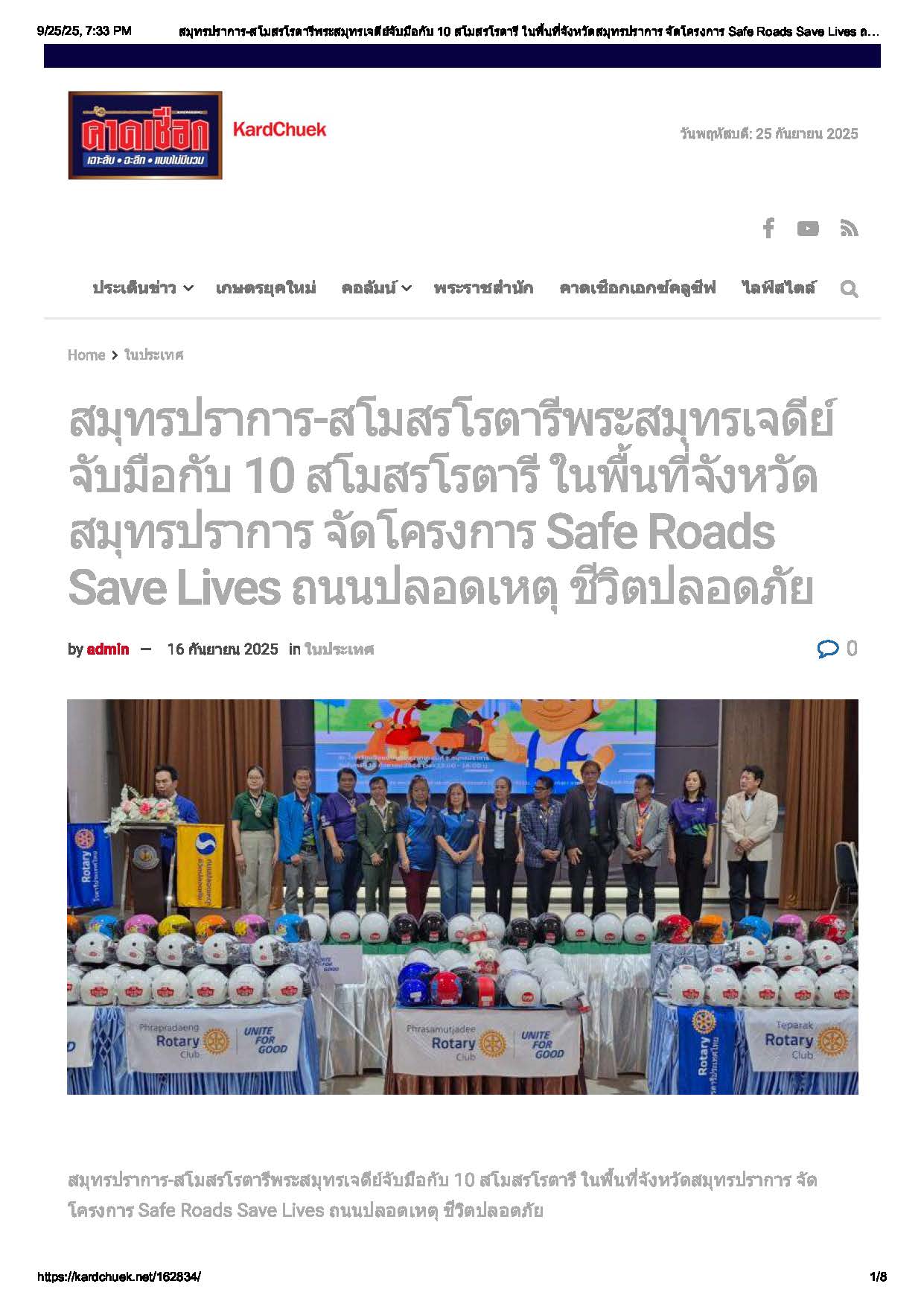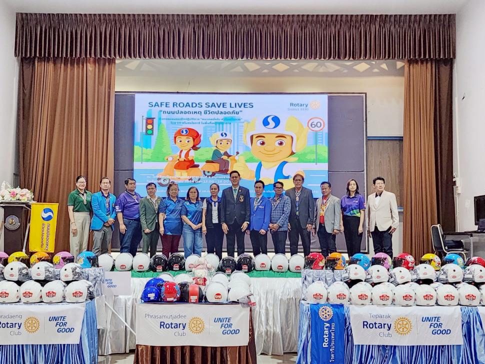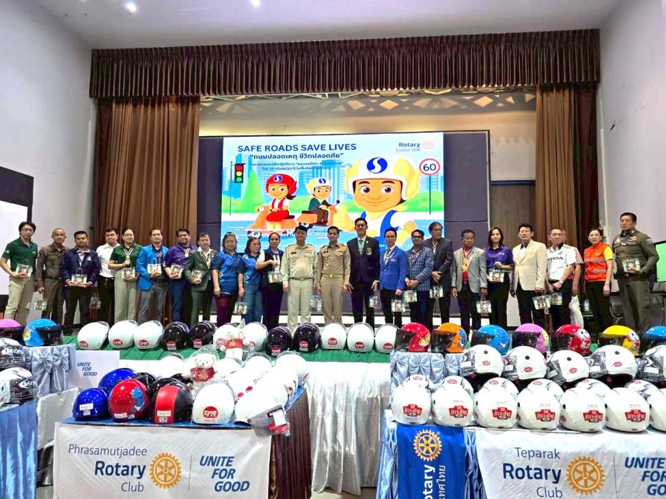 สโมสรโรตารีทั้ง 10 สโมสรในพื้นที่สมุทรปราการ นำโดย นายเจษฎา มหาทองคำ นายกสโมสรโรตารีพระสมุทรเจดีย์ ร่วมกับภาครัฐ ภาคเอกชน และเครือข่ายภาคี จัดอบรมเชิงปฏิบัติการ โครงการ “ถนนปลอดเหตุ ชีวิตปลอดภัย” พร้อมมอบหมวกนิรภัยกว่า 200 ใบ แก่เยาวชนและประชาชน เพื่อส่งเสริมความปลอดภัยและลดความรุนแรงจากอุบัติเหตุบนท้องถนน ณ โรงเรียนป้อมนาคราชสวาทยานนท์ อ.พระสมุทรเจดีย์