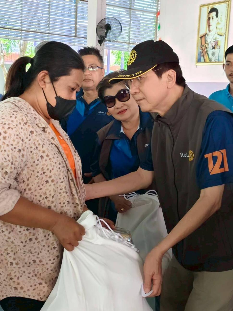 สโมสรโรตารีราชบุรี แจกข้าวกล่อง และถุงยังชีพให้ผู้พิการ ผู้ยากไร้ ผู้ด้อยโอกาสในชุมชนเขตพื้นที่เทศบาลตำบลเขางู ตามโครงการ "เปลี่ยนชีวิต รวมพลัง สร้างสิ่งดี" รวมจำนวน 121 ถุง