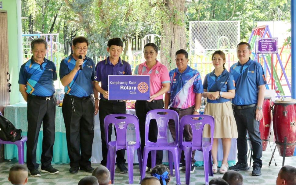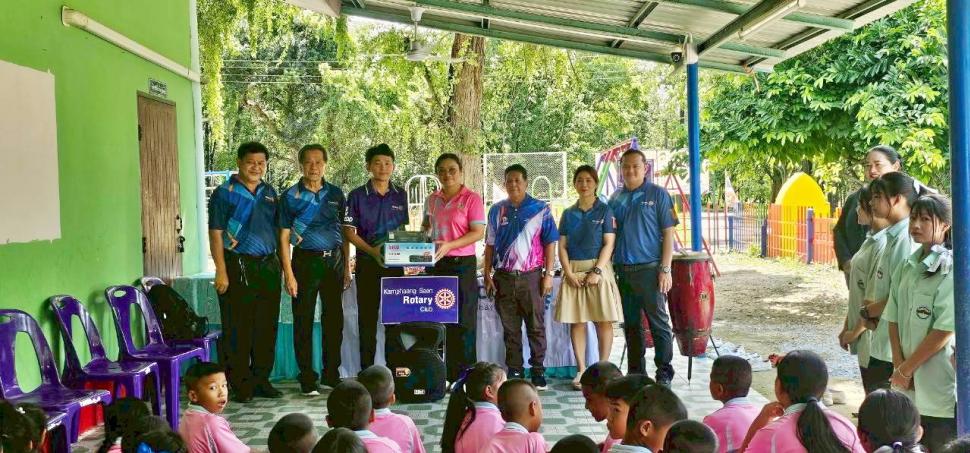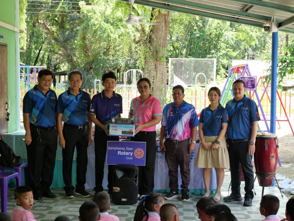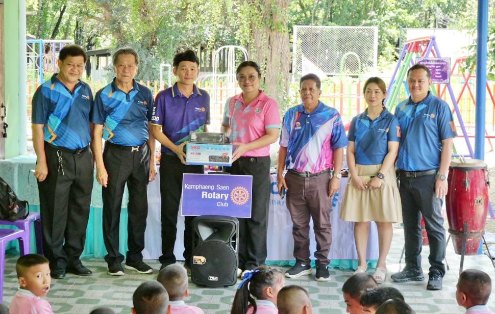 วันที่ 18 กันยายน 2568 สโมสรโรตารีกำแพงแสน โดยนายกนพดล นาคมี พร้อมสมาชิก ได้มอบเครื่องเสียงสำหรับติดตั้งประจำอาคารเพื่อกระจายเสียงภายในโรงเรียน และเครื่องเสียงเคลื่อนที่ไว้สำหรับจัดกิจกรรมในโรงเรียน พร้อมทั้งมอบเก้าอี้ไว้ให้นักเรียนนั่งรับประทานอาหาร ณ โรงเรียนเมืองเก่ากำแพงแสน อำเภอกำแพงแสน จังหวัดนครปฐม โดยมี ผอ.วรรณสิริ สร้างเอี่ยม ผู้อำนวยการโรงเรียนเมืองเก่ากำแพงแสน เป็นตัวแทนผู้รับมอบ