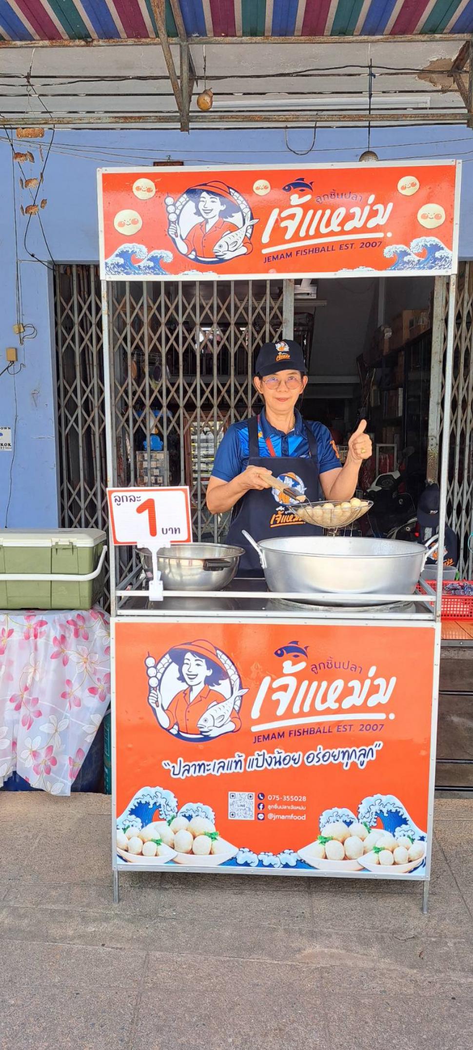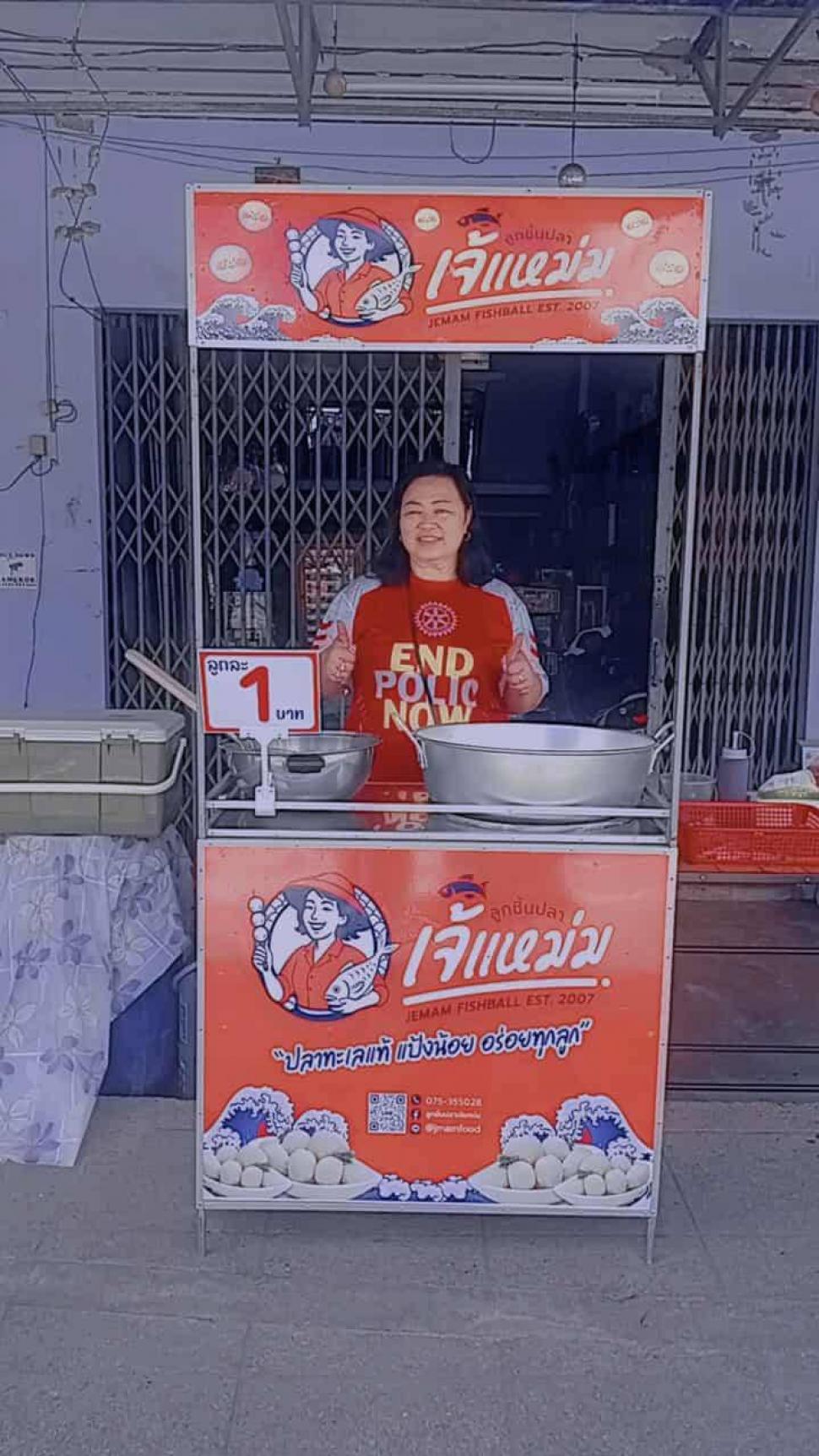สโมสรโรตารีไม้เรียง-นครศรีจัดทำโครงการบริการชุมชน"สร้างอาชีพสร้างรายได้สู่ชุมชน" ร้านลูกชิ้นปลาทอด แบรนด์ลูกชิ้นปลาเจ้เแหม่ม