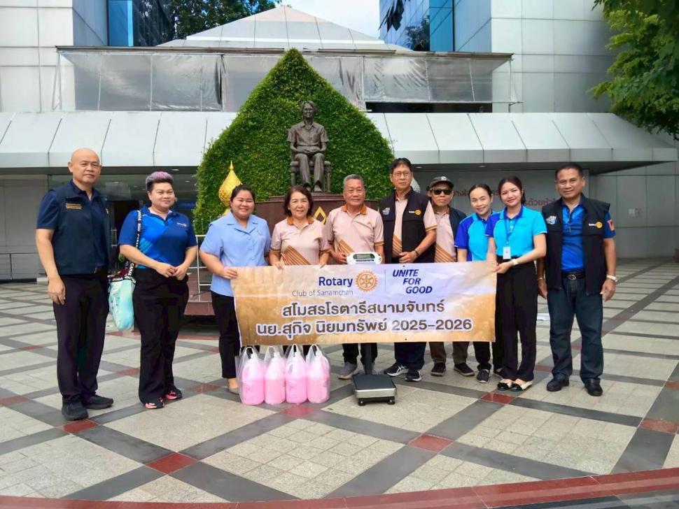 วันที่ 12 กันยายน 2568 สโมสรโรตารีสนามจันทร์ นำโดย นย.สุกิจ นิยมทรัพย์ พร้อมด้วยคณะกรรมการบริหารสโมสร นำเครื่องชั่งน้ำหนัก จำนวน 1 เครื่อง เพื่อส่งมอบให้กับโรงพยาบาลบ้านแพ้ว นำไปใช้ประโยชน์ต่อไป