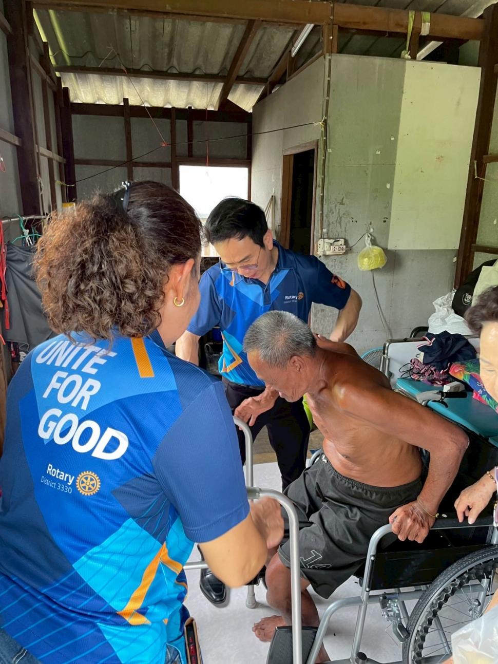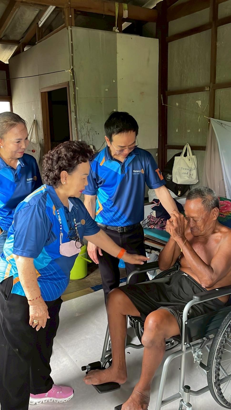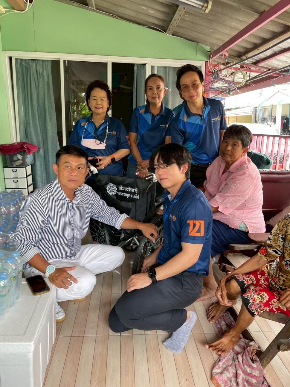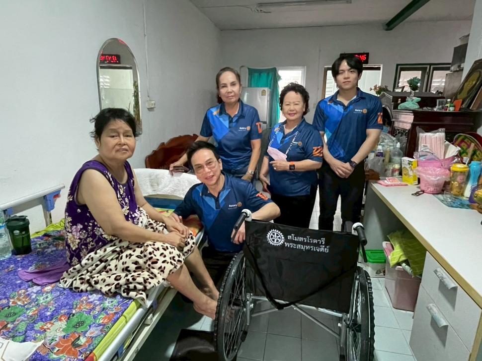 พร้อมด้วย สมาชิกสโมสรฯ ร่วมกับ อบต.ในคลองบางปลากด ส่งมอบรถเข็นวีลแชร์ให้แก่ผู้ป่วยที่มีปัญหาทางการเดิน
