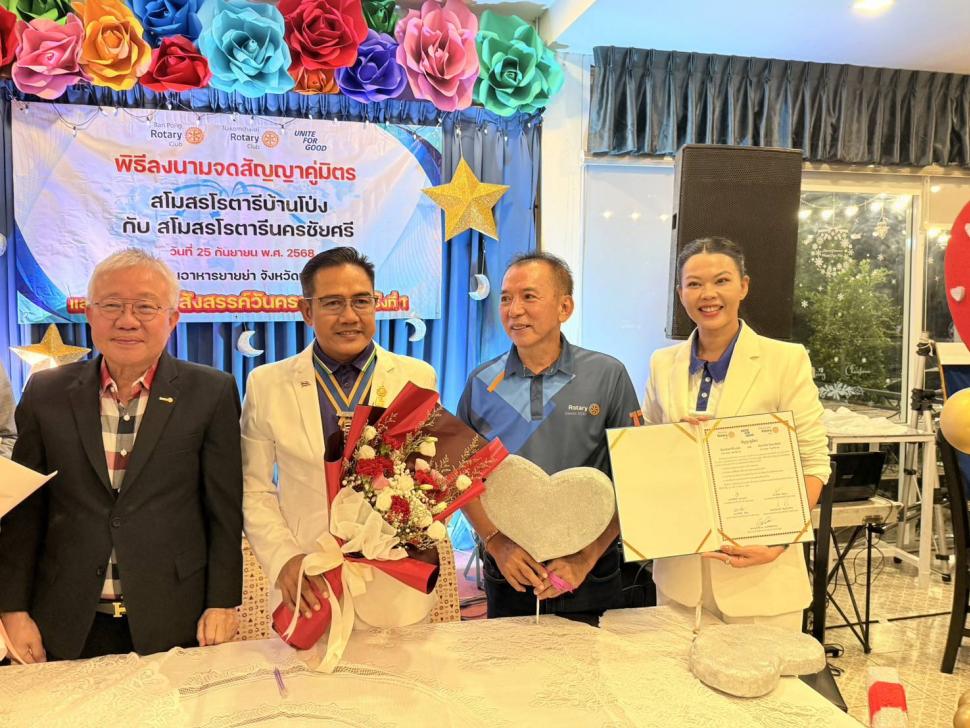 ในวันพฤหัสบดีที่ 25 กันยายน 2568 เวลา 17:30 น. ณ.ร้านยายย่า นครปฐม นายกชัยสิทธิ์ สามงามยา สร.บ้านโป่งและ นายกวันชัย ช่อผกา สร.นครชัยศรี ได้ทำพิธีลงนามจดคู่มิตรระหว่างสองสโมสร เพื่อทำกิจกรรมบำเพ็ญประโยชน์ร่วมกันและมิตรภาพที่ดีต่อกันตลอดไป