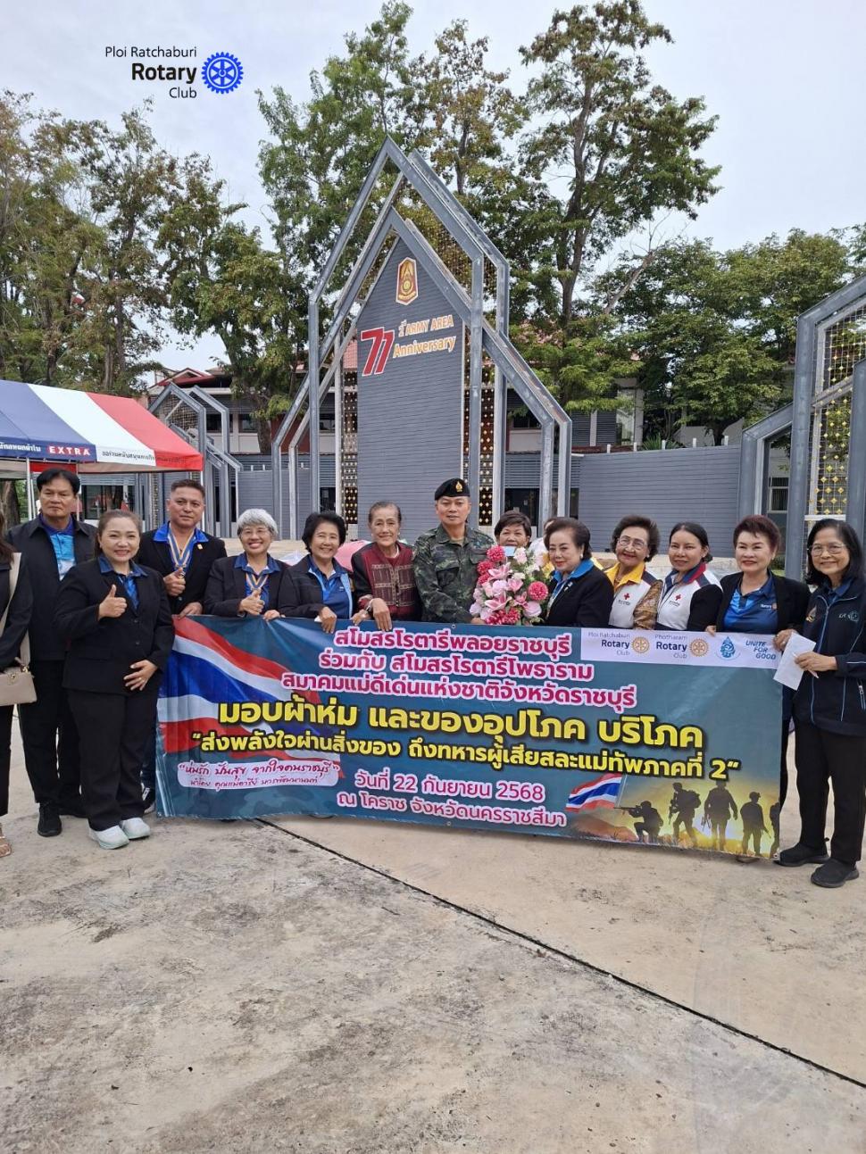 เมื่อวันที่ 22 กันยายน 2568 สโมสรโรตารีพลอยราชบุรี และสโมสรโรตารีโพธารามร่วมกับ สมาคมแม่ดีเด่นแห่งชาติจังหวัดราชบุรี ดำเนินกิจกรรม “ห่มรัก ปันสุข จากใจคนราชบุรี“ นำทีมโดย รทร.อารีย์ บวรพัฒนานนท์ และสมาชิกสโมสรโรตารีพลอยราชบุรี มอบผ้าห่ม และของอุปโภคบริโภคมากมาย เพื่อส่งพลังใจผ่านสิ่งของ ถึงทหารผู้เสียสละแม่ทัพภาคที่ 2 ที่จังหวัดนครราชสีมา