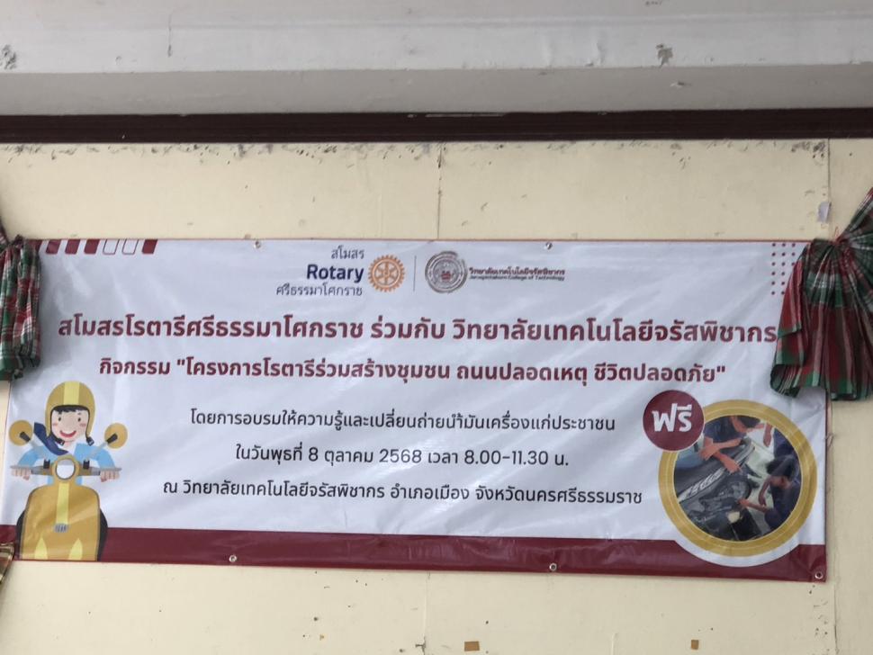 โดยในภาคเช้าได้เป็นประธานในพิธีเปิดกิจกรรม "โครงการโรตารีสร้างชุมชน ถนนปลอดเหตุ ชีวิตปลอดภัย" ในการอบรมให้ความรู้และเปลี่ยนถ่ายน้ำมันเครื่องให้กับผู้ขับขี่รถจักรยานยนต์ จำนวน ๕๐ คน ณ วิทยาลัยเทคโนโลยีจรัสพิชากร อ.เมือง จ.นครศรีธรรมราช สำหรับภาคบ่ายได้ดำเนินกรรมวิธีให้คำแนะนำในการดำเนินงานตามวัตถุประสงค์ของโรตารี และให้ความรู้เกี่ยวกับวิสัยทัศน์ ค่านิยม แก่สมาชิกในสโมสร พร้อมกับร่วมประชุมประจำสัปดาห์กับสโมสร เป็นองค์ปาฐกบรรยายพิเศษ ณ ห้องประชุม ร้านอาหารคันทรีโฮม อ.เมือง จ.นครศรีธรรมราช ซึ่งได้สร้างความประทับใจและเชื่อมั่นศรัทธาแก่สโมสรฯ โดยสโมสรพร้อมที่จะนำความรู้ไปใช้เป็นแนวทางปฏิบัติในองค์กรและชุมชนต่อไป