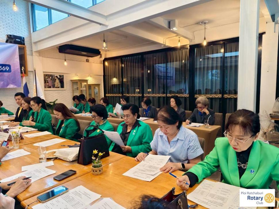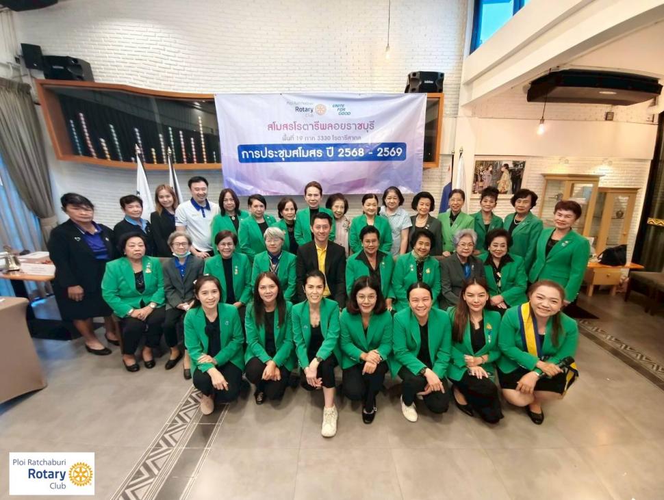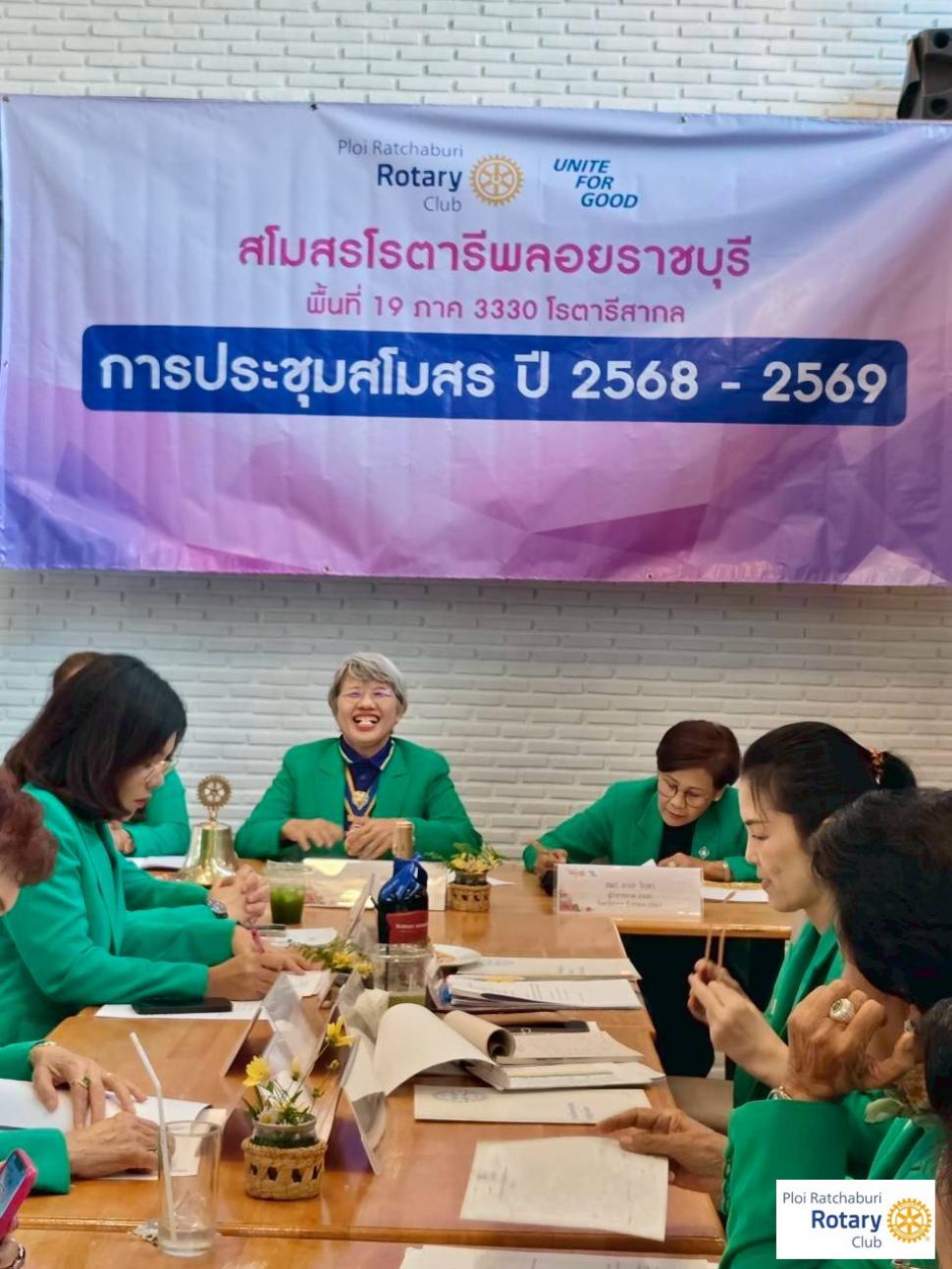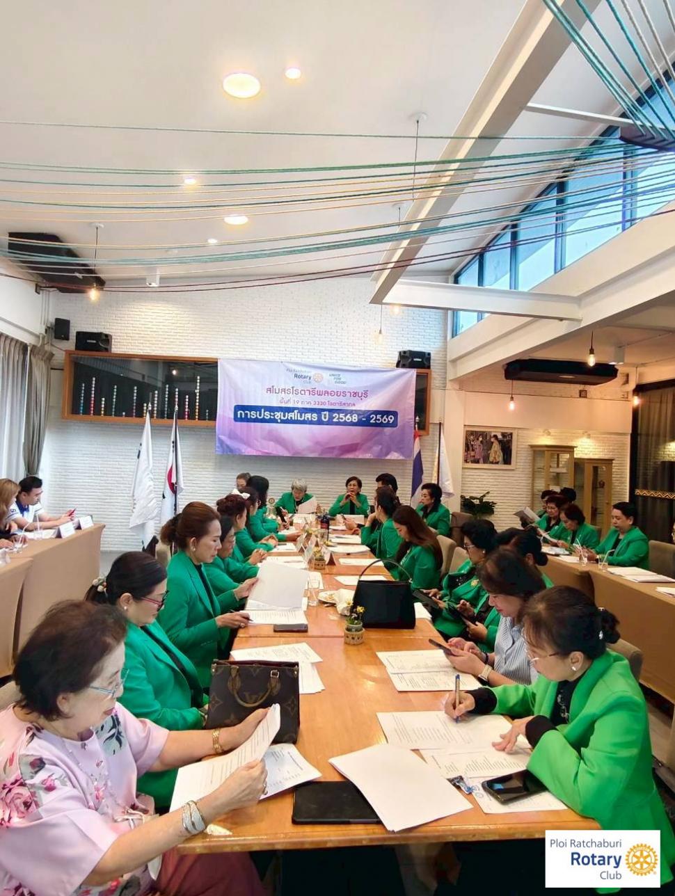 สโมสรโรตารีพลอยราชบุรี จัดการประชุมครั้งที่ 1 วันที่ 23 กรกฎาคม 2568 ที่โรงแรม ณ เวลา เป็นการประชุมเปิดตัวท่านนายกสมบัติ เกิดบุญมี