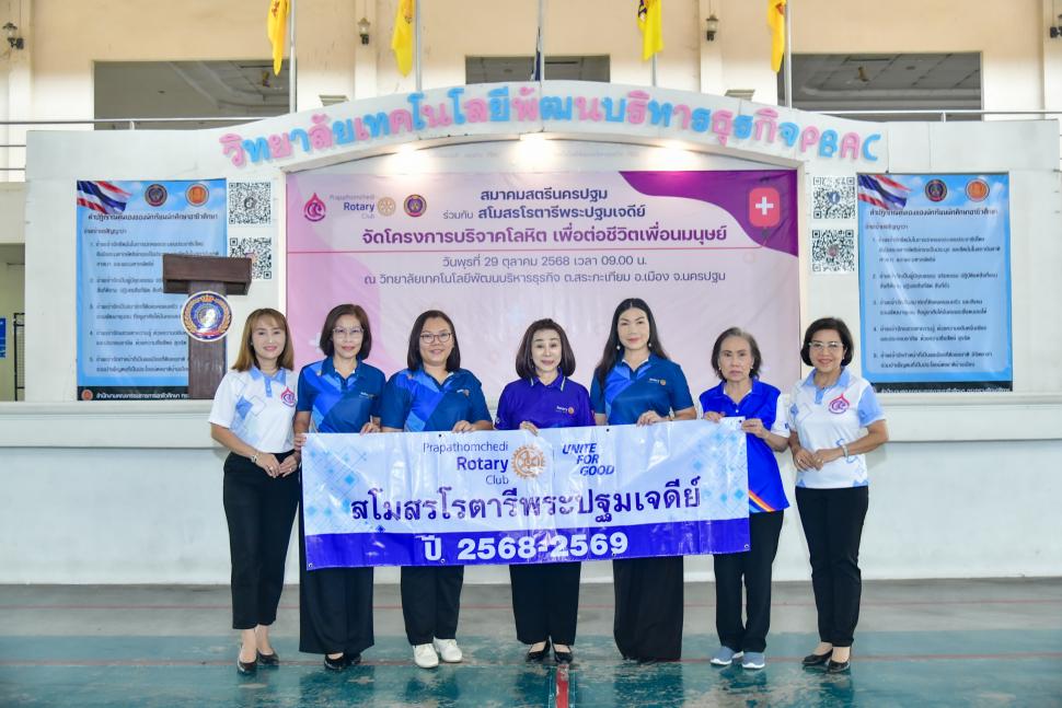 จัดโครงการบริจาคโลหิต เพื่อต่อชีวิตเพื่อนมนุษย์ ณ วิทยาลัยเทคโนโลยีพัฒนบริหารธุรกิจ ต.สระกะเทียม อ.เมือง จ.นครปฐม