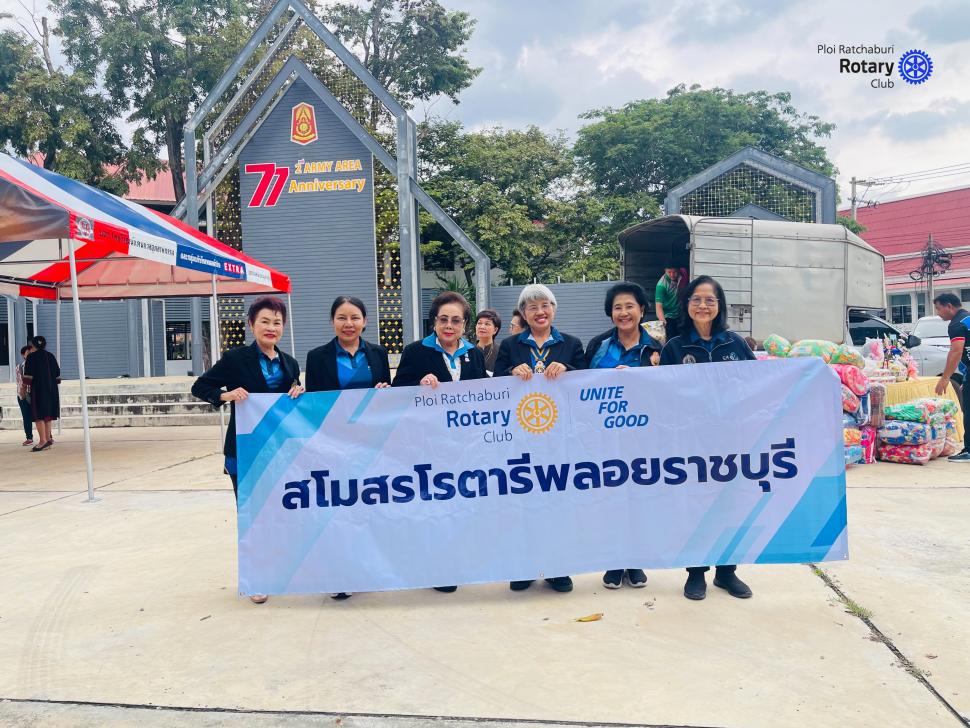 สโมสรโรตารีพลอยราชบุรีจัดการประชุมสัญจรครั้งที่ 5 วันที่ 22 กันยายน 2568 ร่วมกับ สมาคมแม่ดีเด่นแห่งชาติจังหวัดราชบุรี ดำเนินกิจกรรม “ห่มรัก ปันสุข จากใจคนราชบุรี“ นำทีมโดย รทร.อารีย์ บวรพัฒนานนท์ และสมาชิกสโมสรโรตารีพลอยราชบุรี มอบผ้าห่ม และของอุปโภคบริโภคมากมาย เพื่อส่งพลังใจผ่านสิ่งของ ถึงทหารผู้เสียสละแม่ทัพภาคที่ 2 ที่จังหวัดนครราชสีมา