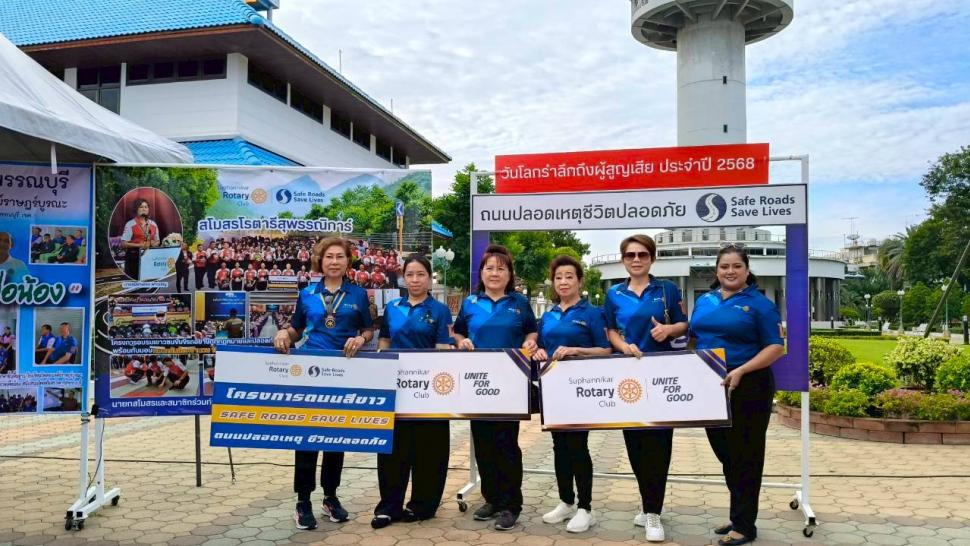 นำโดยนายก ปียาพัชร พาเจริญ พร้อมสมาชิกร่วมเดินรณรงค์ เนื่องในวันโลกรำลึกถึงผู้สูญเสียจากอุบัติเหตุทางถนนประจำปี 2568 ซึ่งทางสโมสรโรตารีสุพรรณิการ์ พร้อมด้วยสโมสรโรตารีรวม 6 สโมรในจังหวัดสุพรรณบุรี ได้ร่วมทำกิจกรรมกับกระทรวงการพัฒนาสังคมและความมั่นคงของมนุษย์ จังหวัดสุพรรณบุรี และหน่วยงานราชการของจังหวัด อีกหลายภาคส่วน เพื่อช่วยรณรงค์ให้นักเรียน นักศึกษา และประชาชนทั่วไปได้เล็งเห็นถึงความปลอดภัยบนท้องถนน