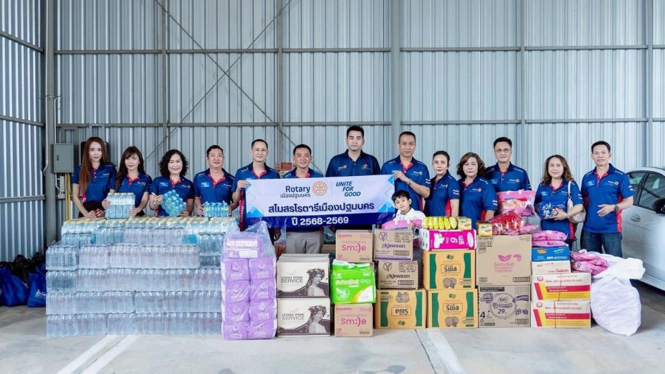 ... นายกพงษ์ พาวิทยลาภ และสมาชิกสโมสรโรตารีเมืองปฐมนคร ร่วมบริจาคสิ่งของเครื่องใช้อุปโภคบริโภค สำหรับพี่น้องภาคใต้ที่ประสบภัยน้ำท่วม เมื่อวันที่ 9 ธันวาคม 2568 ณ บริษัท เบนซ์เพชรรัตน์ จำกัด ถ.เพชรเกษม ต.ห้วยจรเข้ อ.เมือง จ.นครปฐม