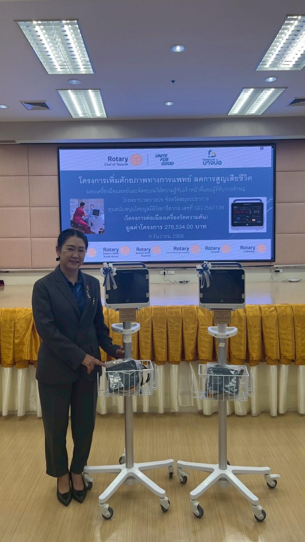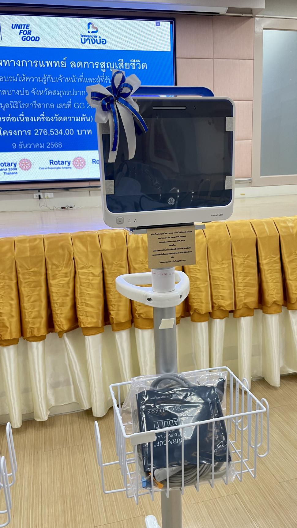โครงการเพิ่มศักยภาพทางการแพทย์ ลดการสูญเสียชีวิต มอบเครื่องมือแพทย์และจัดอบรมให้ความรู้กับเจ้าหน้าที่และผู้ที่รับการรักษา โรงพยาบาลบางบ่อ จังหวัดสมุทรปราการ