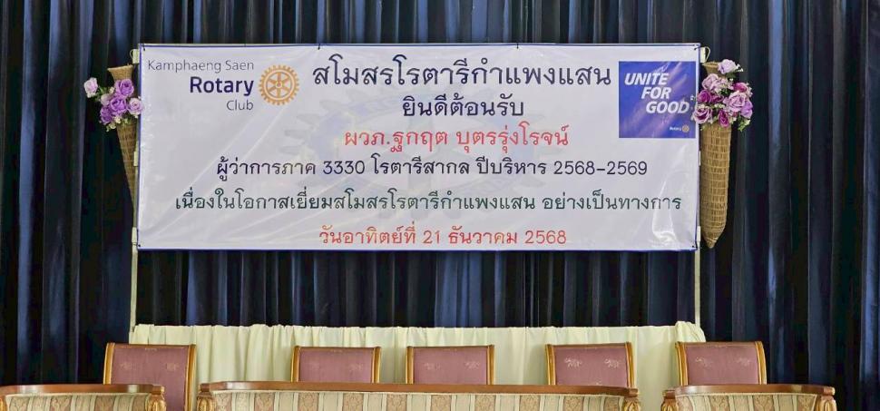วันอาทิตย์ที่ 21 ธันวาคม 2568 ผู้ว่าการภาค 3330 โรตารีสากล ผวภ.ฐกฤต บุตรรุ่งโรจน์ เยี่ยมสโมสรโรตารีกำแพงแสนอย่างเป็นทางการ ณ ชุมชนโรตารี ลาวครั่งหนองหัวช้าง (RCC) ต.วังน้ำเขียว อ.กำแพงแสน จ.นครปฐม