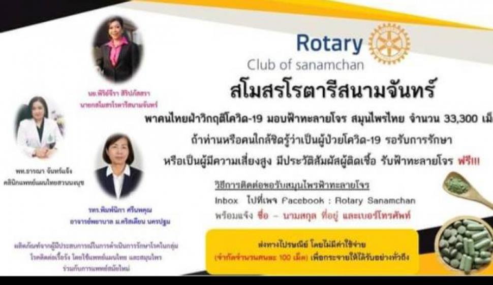 สโมสรโรตารีสนามจันทร์รวมพลังต้านโควิด มอบฟ้าทะลายโจร 33,300 เม็ด ฟรี