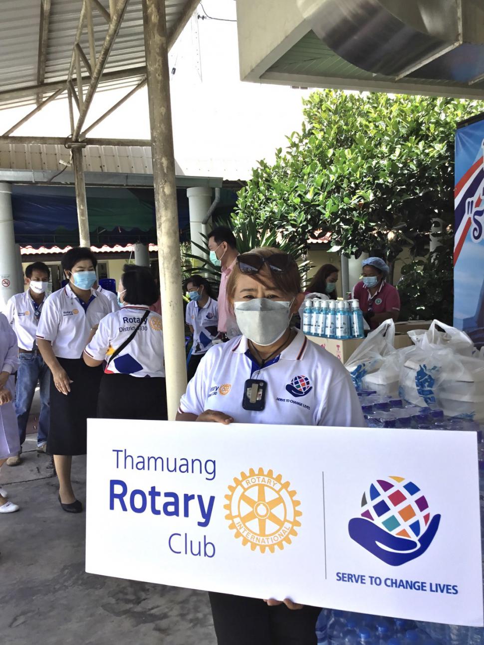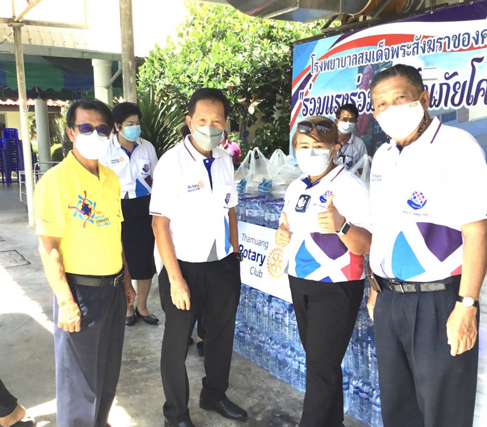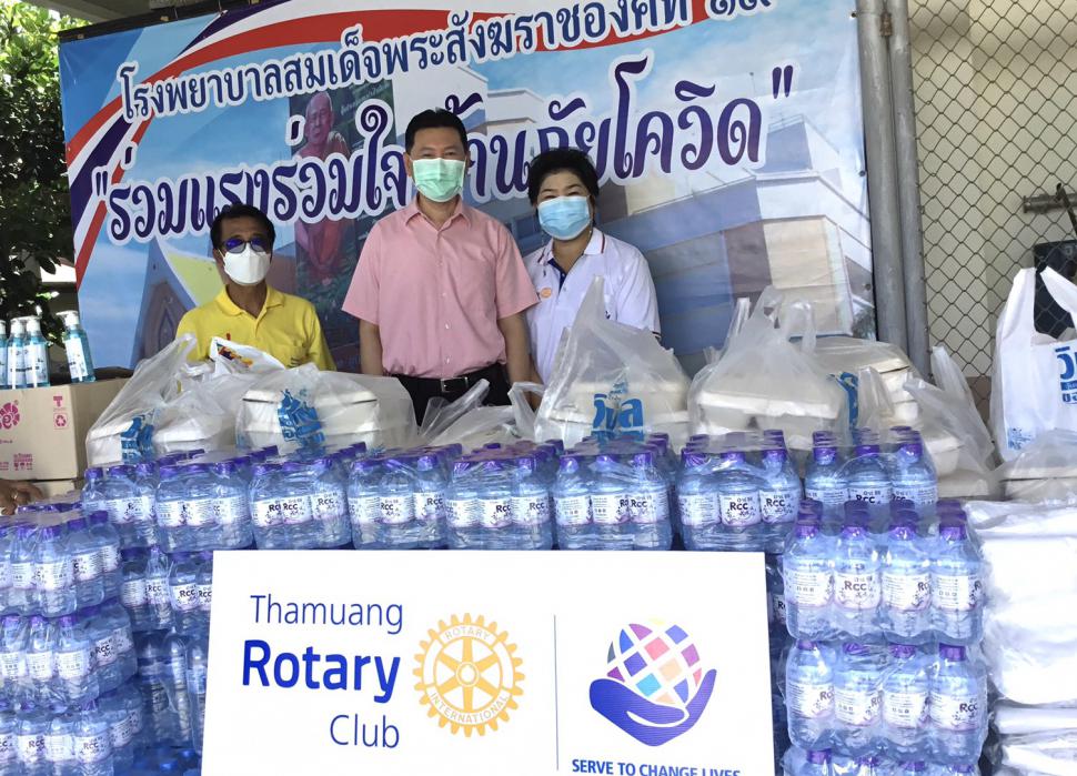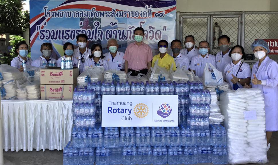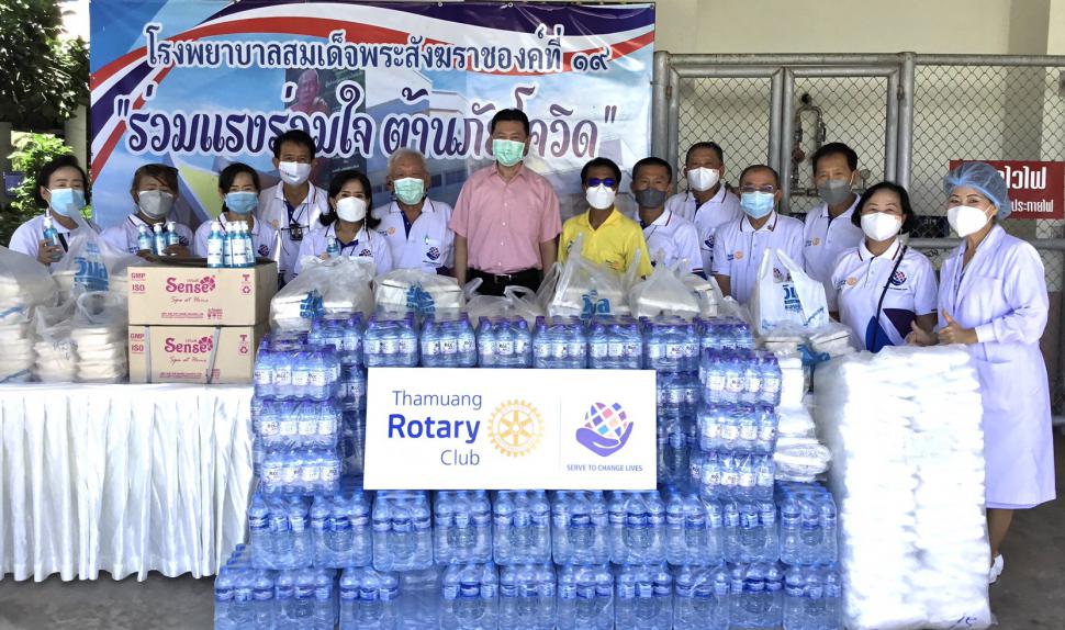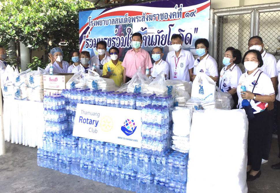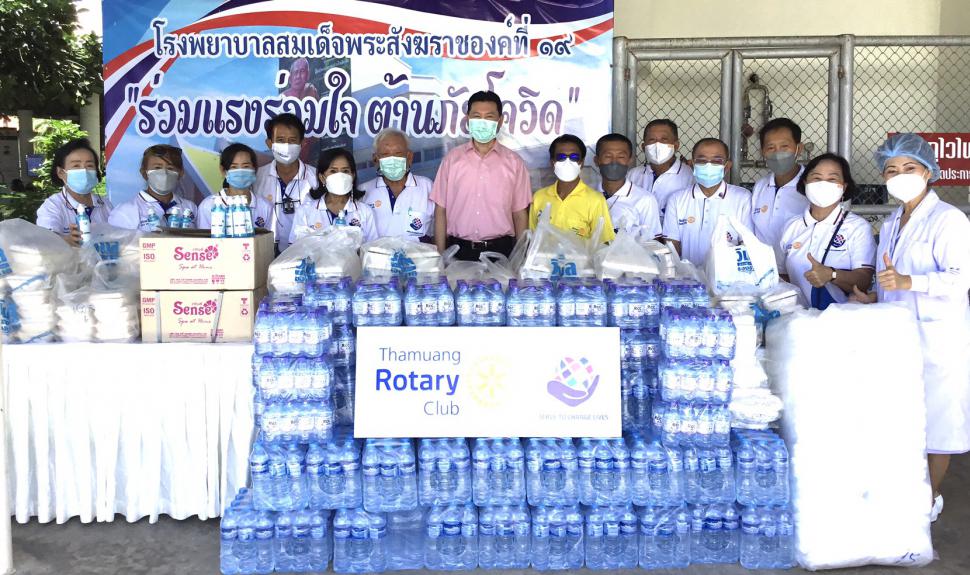 17สค.2564 สโมสรโรตารีท่าม่วง นำโดย นายกธีระ จงใจรักษ์พร้อมสมาชิก มอบชุด PPE อาหารกล่อง ขนม น้ำดื่ม มอบให้ รพ.สมเด็จพระสังฆราชองค์ที่ 19