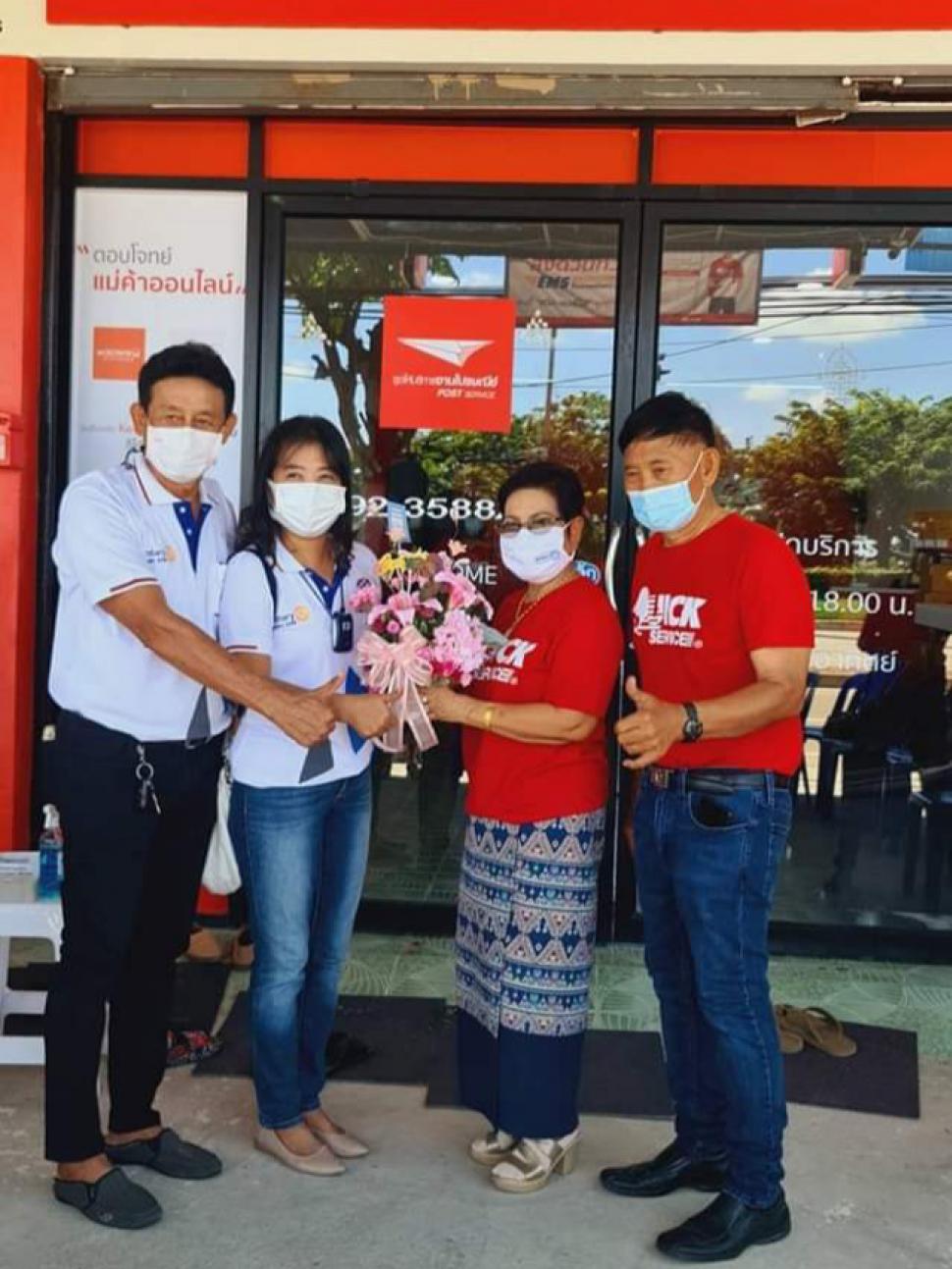 นายกสุกฤตา อรุโณทัย นำทีมสมาชิกร่วมแสดงความยินดีกับ อน.สมชาติ รามกุล เนื่องในวันเปิดกิจการ ขนส่งพัสดุ ณ.ร้านควิสเซอร์ ก่อนถึงศูนย์ราชการ จ.สุพรรณบุรี วันที่ 29 กันยายน 2564